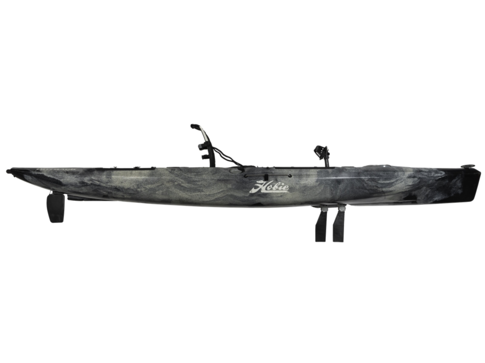 Hobie has advanced the sport of kayak fishing with Kick-Up Fins that automatically retract upon impact. The extra-wide standing deck offers an improved casting platform and convenient vantage point for sight fishing, allowing for superior vision from above while the revolutionary Guardian Transducer Shield gives you multidimensional vision below. The adjustable Vantage CTW seat provides 1.5" of extra width and lumbar support for unmatched room and comfort for long days on the water. The Hobie H-Rail with integrated patented RAM® Hand-Track™ and numerous high-capacity storage compartments deliver the ultimate customization and organization in accessory mounting, ensuring that all of your gear is at your fingertips. Powered by the MirageDrive 180 with Kick-Up Turbo Fins, this fine-tuned angling vessel is highly versatile, fast, quiet, and exceedingly nimble.