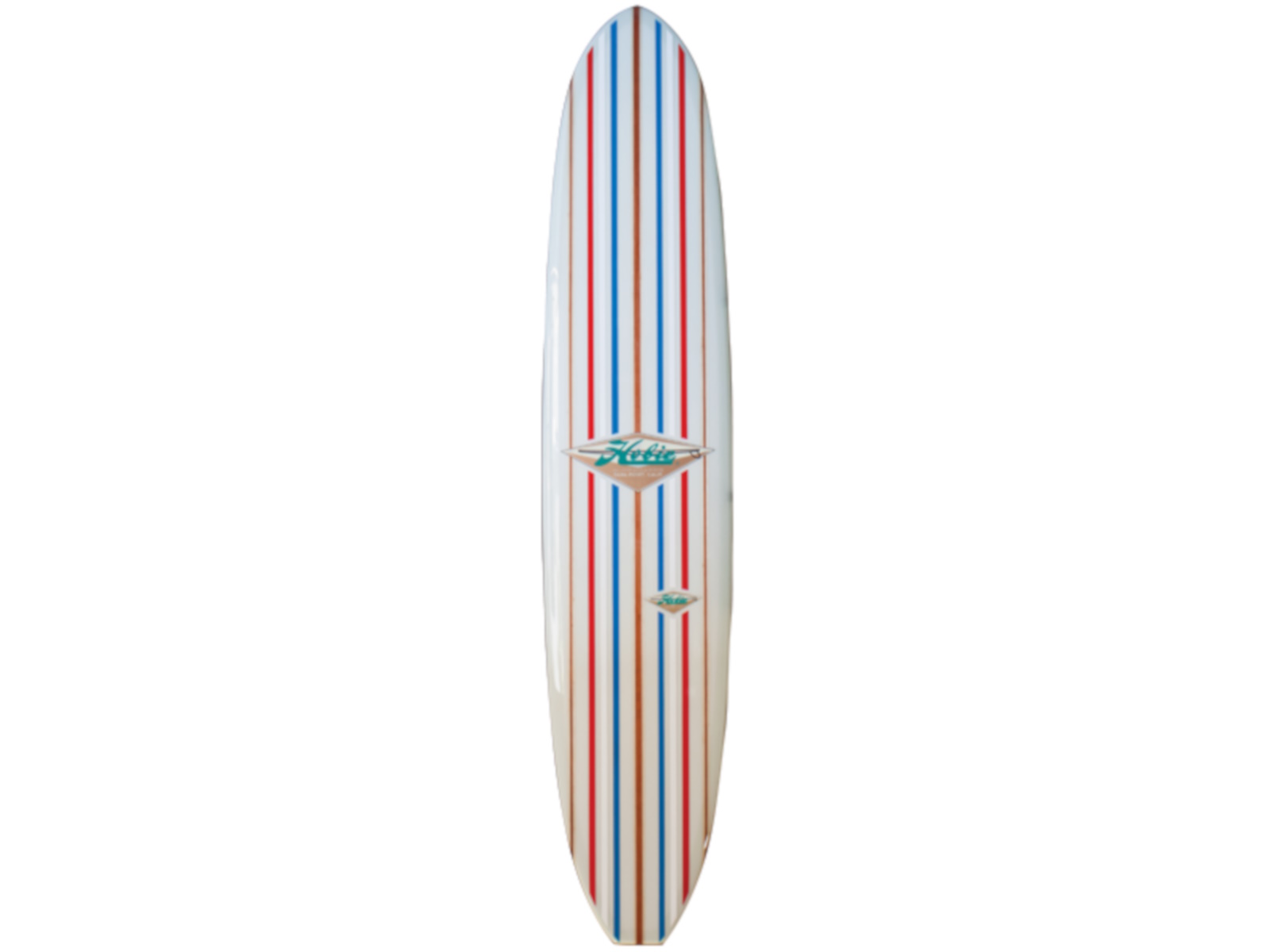 The Endless Summer.” In an unforgettable tale, Mike Hynson and Robert August tour the world in a noble pursuit of sun and surf. Both surfers were of equal talent, but Hynson was one of Hobie’s prized team riders. Hynson, a native of San Diego county, shaped surfboards and was well-known for his extra-cool style. Almost the same age, Mike was Robert’s perfect counterpart and they welcomed the world to the machine-like rights of Cape St. Francis. Today, Hynson continues to shape surfboards in and around Encinitas, CA. He is credited with many designs from his Gordon and Smith Red Fin Model, some of the first noserider concepts, and the late 60’s downrailers. According to many, including Gerry Lopez, Hynson deserves recognition for his wave-riding innovations. As one of Mike’s early contributors, Hobie is honored to offer the model that started it all. This board is an excellent rider, as well as, sought after by many surfboard collectors. This is your chance to remember surfing’s past and begin your own pursuit for “The Endless Summer.”