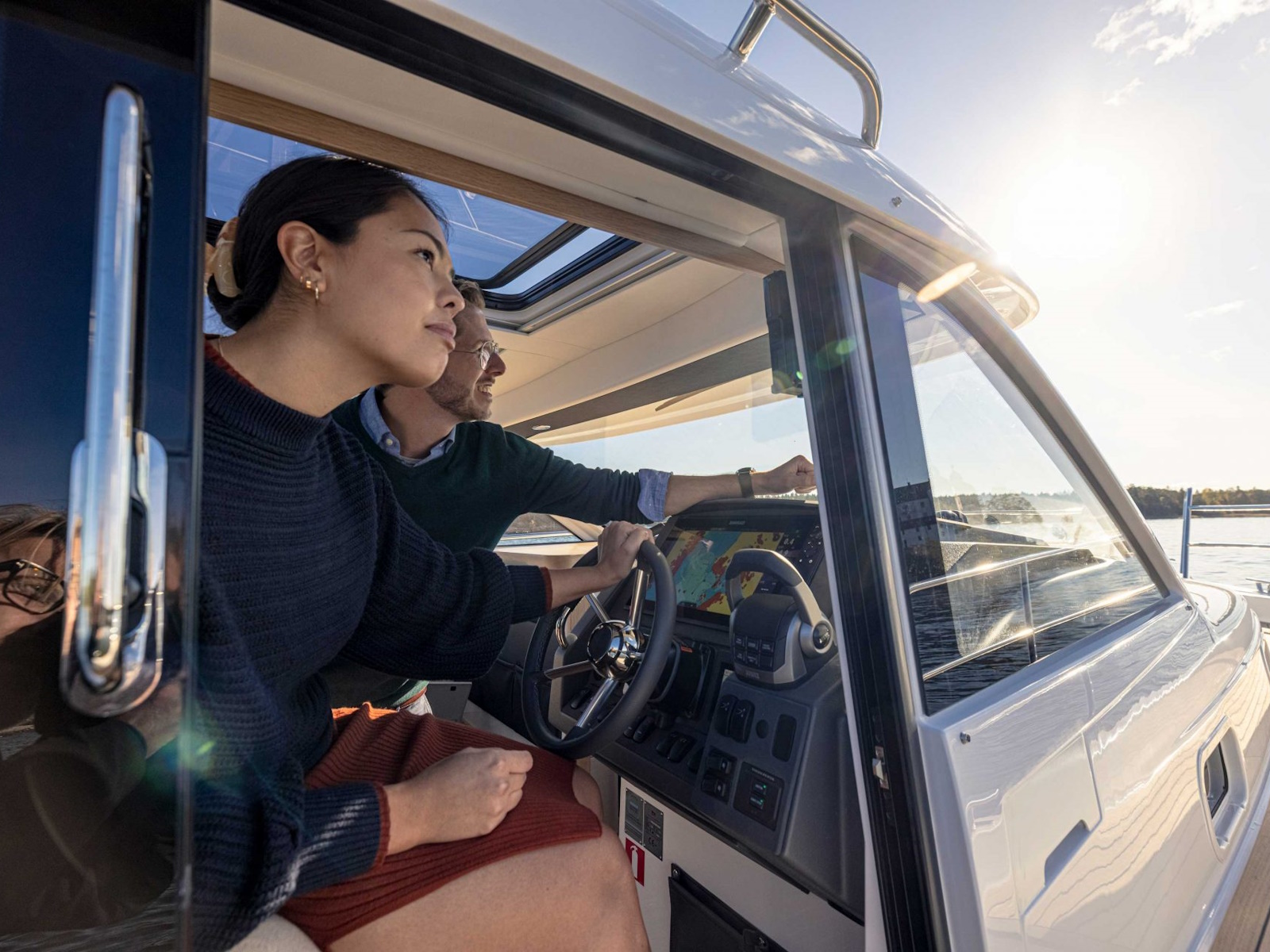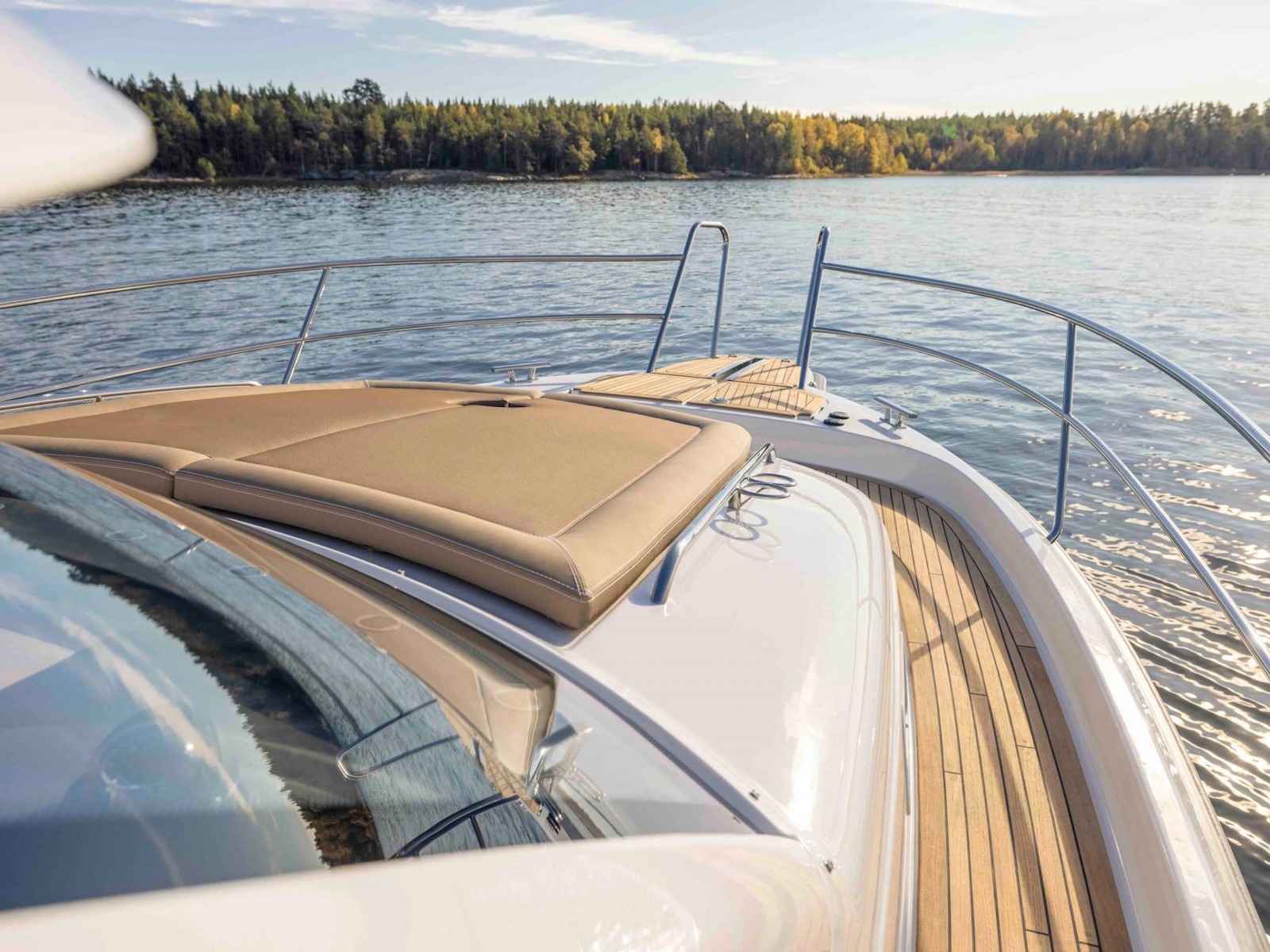 Examples of this functional and improved design are a stronger bumper list, improved visibility from the helm position and salon, a new D-pillar with integrated ventilation, double sunroofs allowing for more natural light in the salon, an extended aft roof for better shelter and easier canopy handling, a new, improved side door and redesigned pulpits with improved functionality and safety.