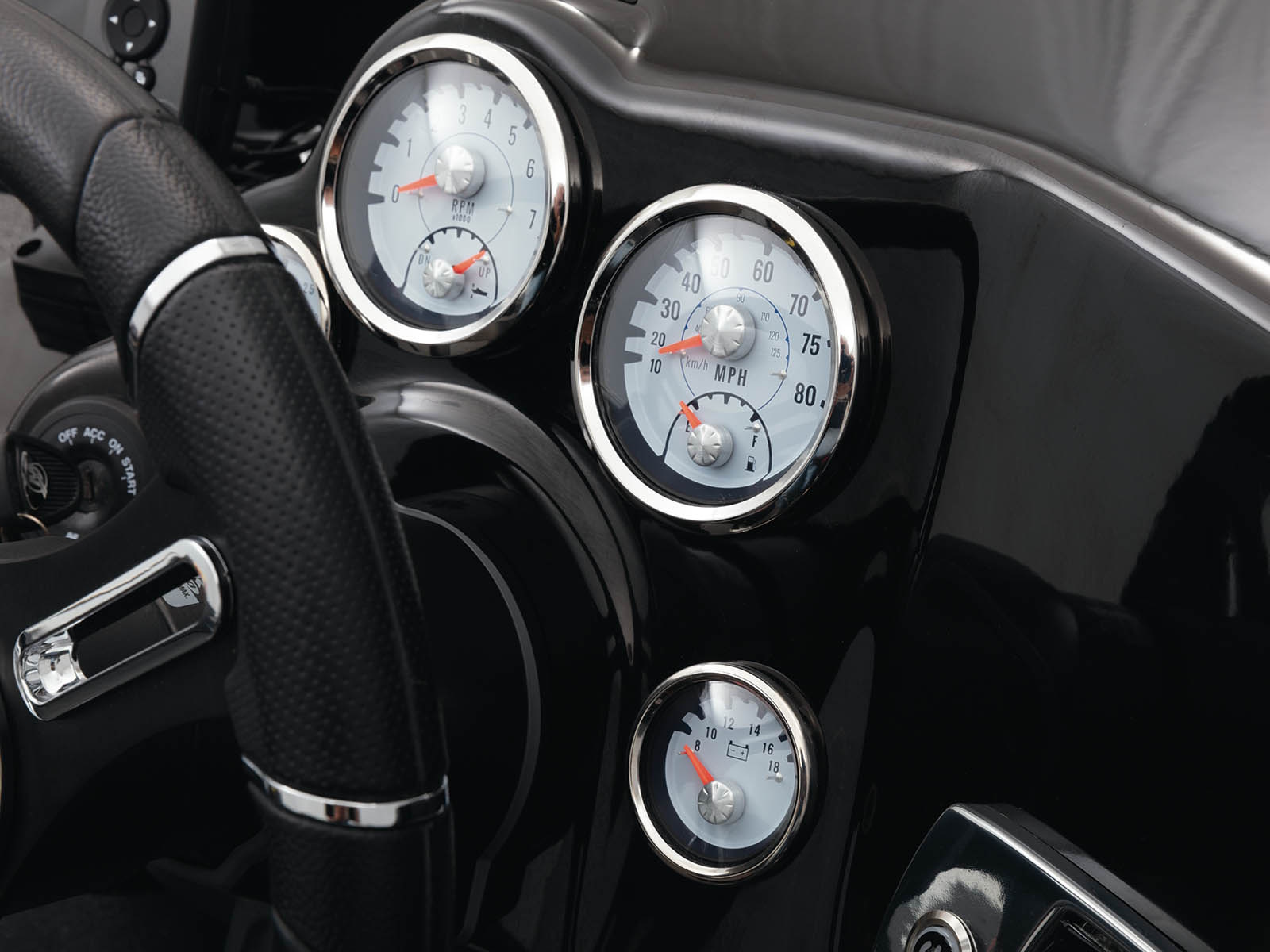 - Veethree® multifunction instrumentation gauges w/speedometer/fuel gauge, tach/trim gauge, voltmeter gauge & water pressure gauge