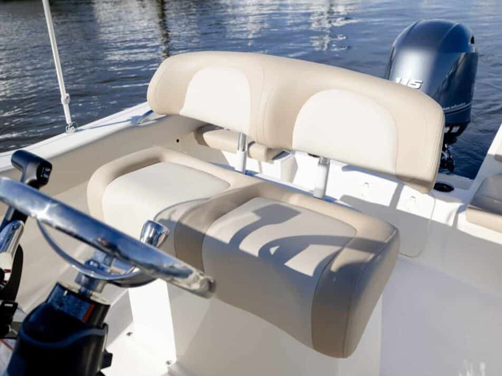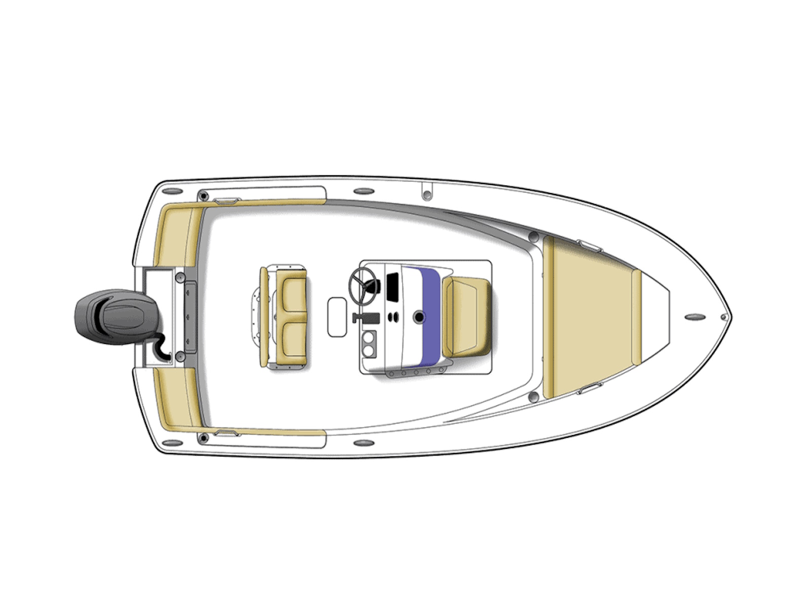 This 19-footer measures 19’5” in length with a wide beam of 8’6” offering vast space to not only move around freely onboard but to also land the big catch of the day. Standard swim platform, leaning post aerated bait well and console removable cooler seat with cushions complement the optional list of features available on this fuel efficient model. Available with optional T-top or bimini top and backrest seating arrangement with ski tow bar for water sports enthusiasts.