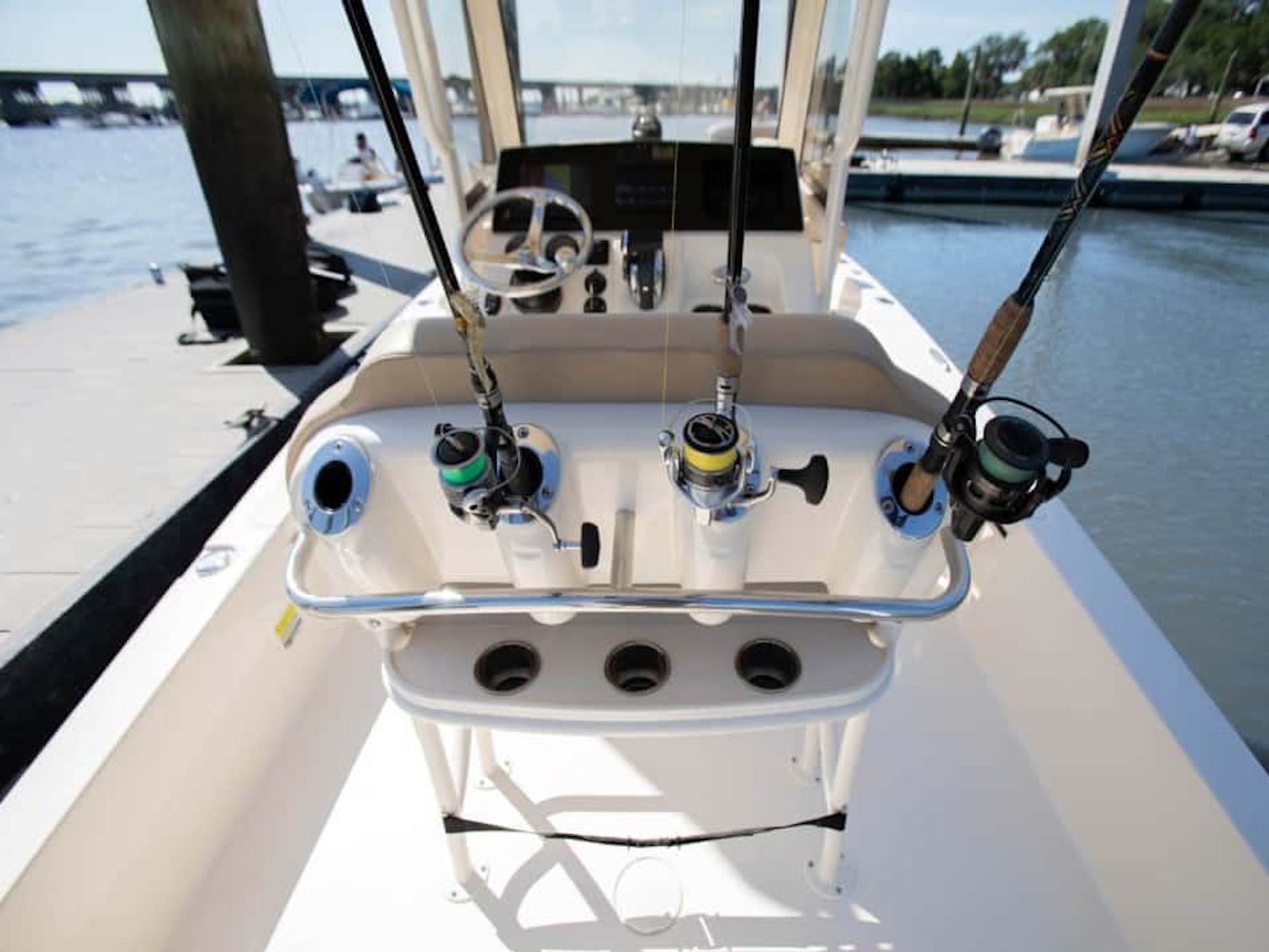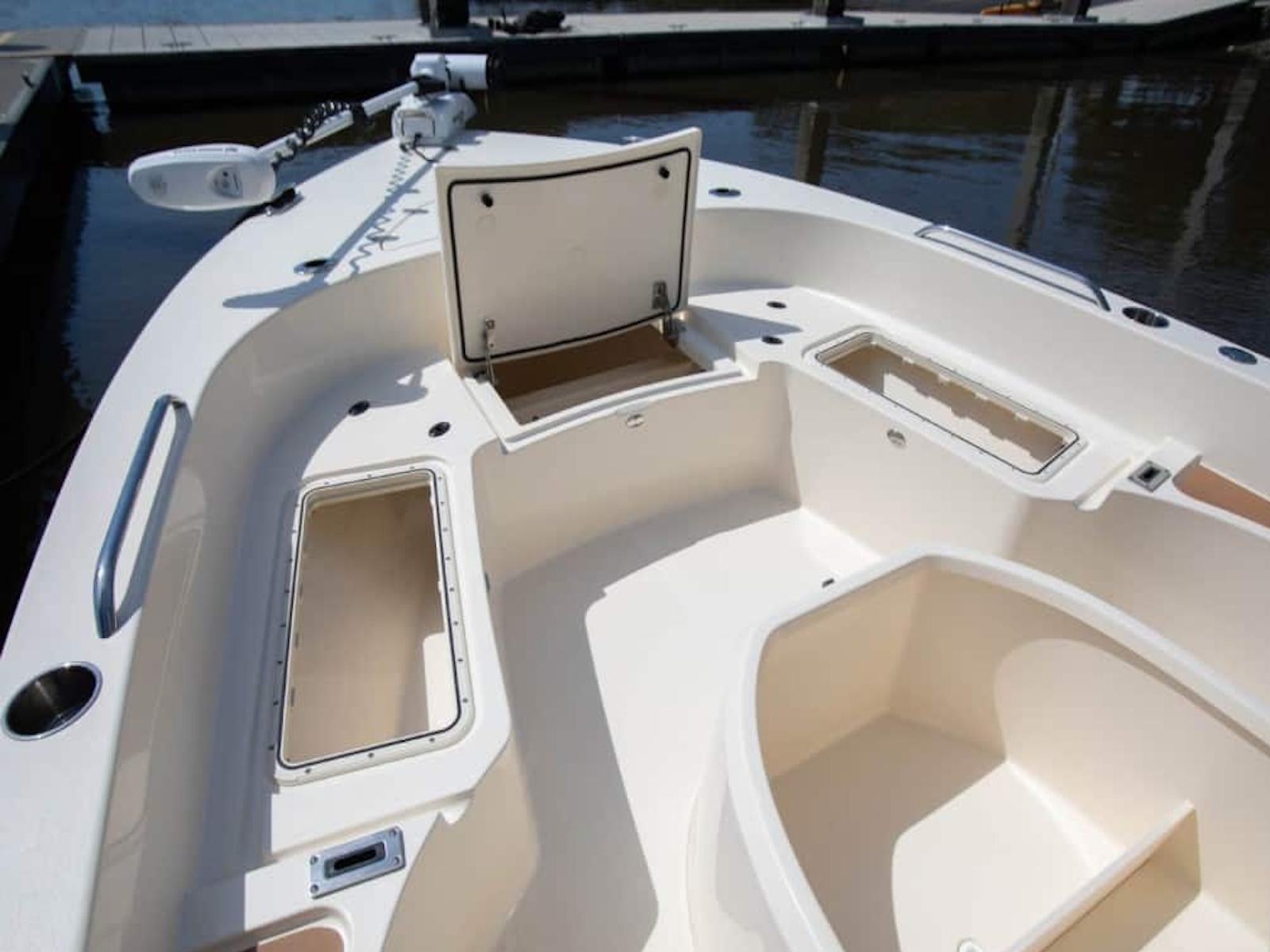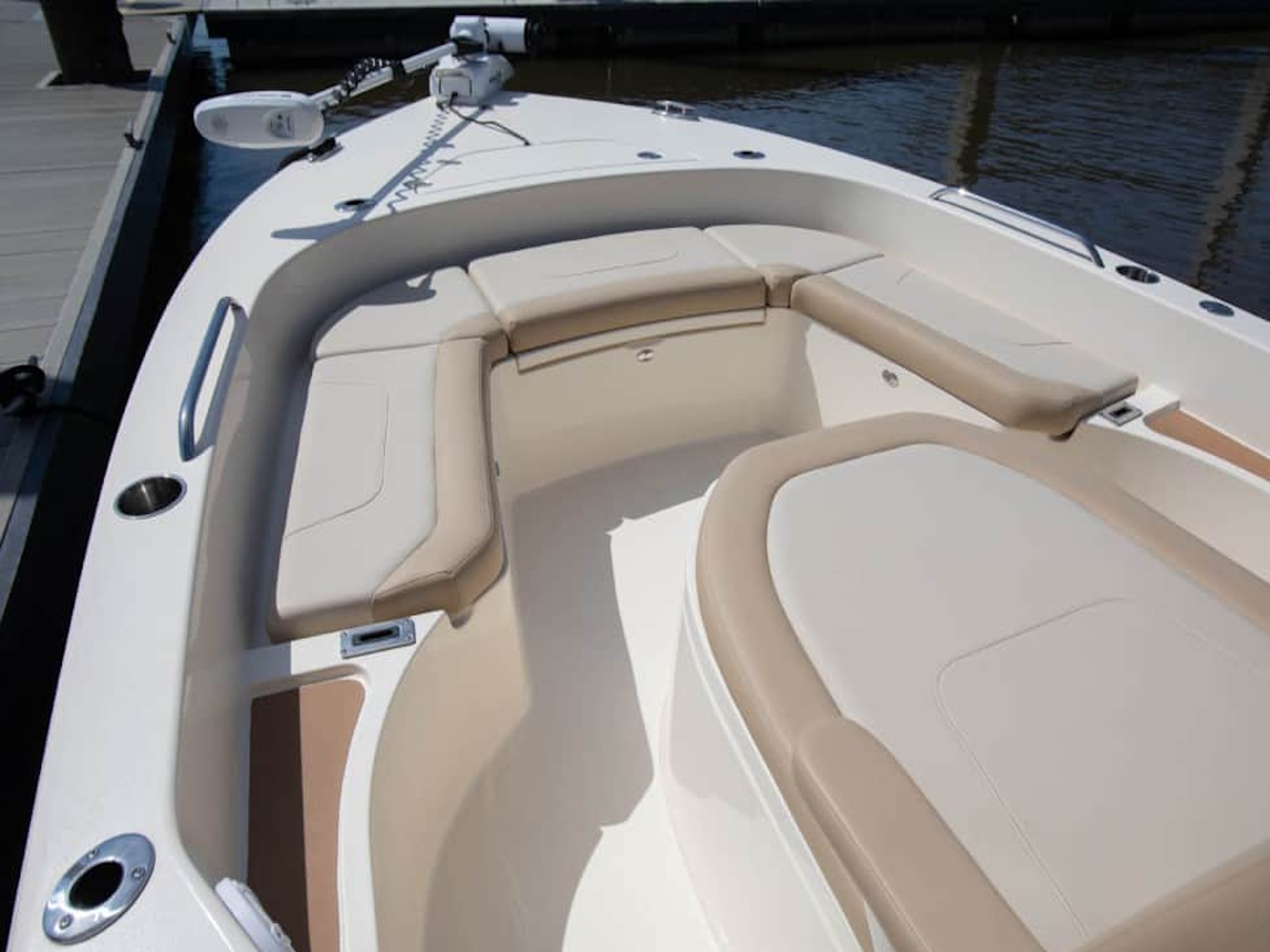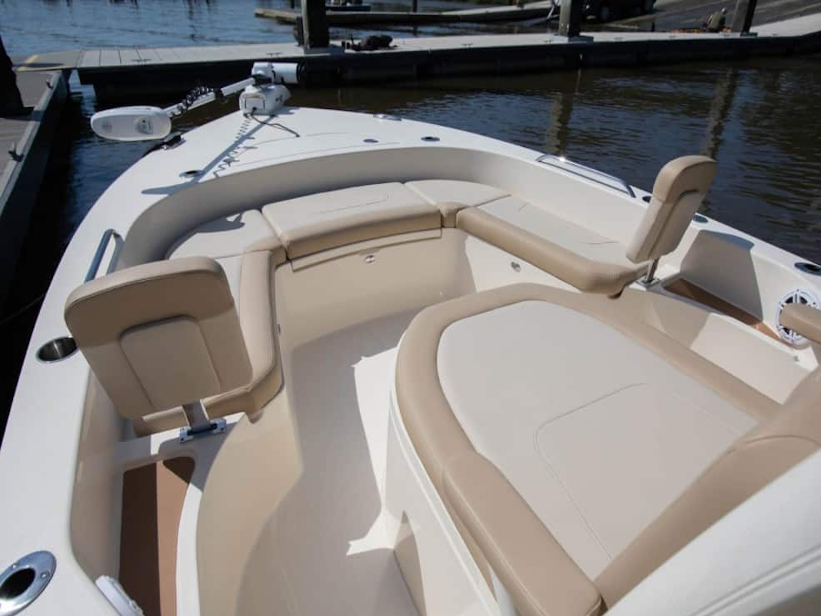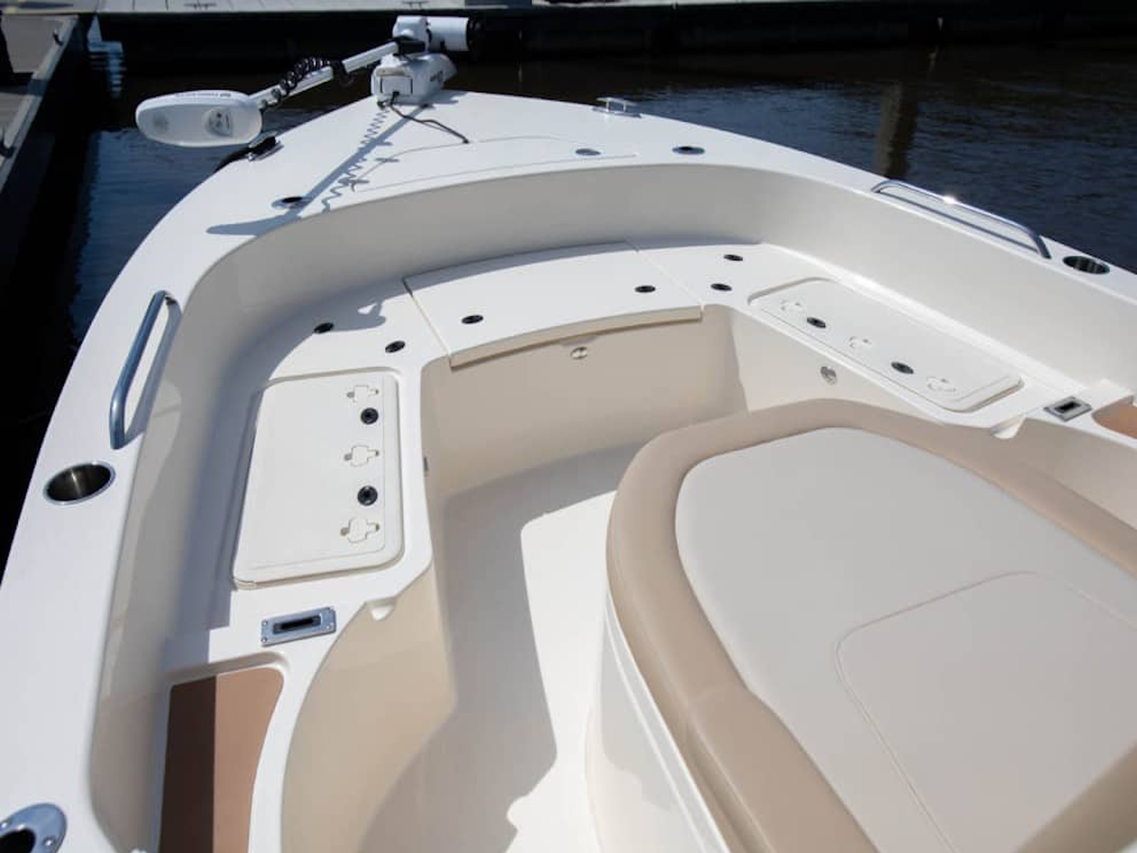 The 231 XSB is our third XS model in the bay boat/inshore line-up and compliments the already popular 231 XS and 251 XSS. This model showcases up to five removable backrests (two receivers forward; three receivers aft) for added comfort for the crew, as well as a patent-pending new thru-hull bow anchor pole feature called the Scout Post. Two optional aft baitwells, ample rod holders and storage, and three leaning post options are all available on this fishing machine. Like our other XS models, the 231 XSB has all the characteristics of a serious bay boat, as well as sexy, aggressive lines and proven high performance.