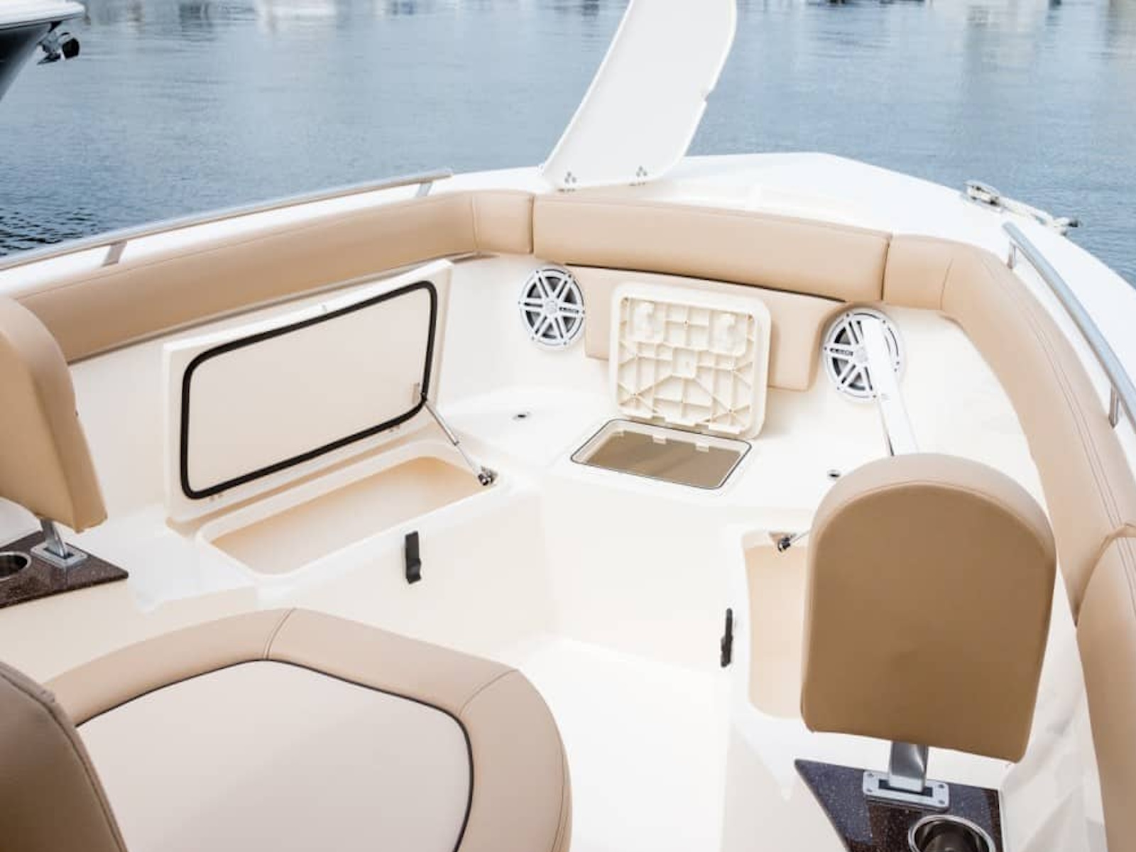 Sleek lines, innovation and high performance make this 240 XSF the hottest boat in its class. Built on our revolutionary NuV3 fuel efficient hull design, this forward seating center console model is ready for the open water, but will also save you money at the fuel pump. We’ve incorporated a longer outboard shaft so that we could do away with the transom splash well, creating a level full-access swim platform for safer access and use. LED lighting – including rope lighting and unique underside hardtop lights that are perfect for illuminating the boat during pre-dawn, dusk or night excursions – fold-away stern seat, aerated transom bait well, forward lounge seating with fish / storage box and overboard pump out, powder coated elite leaning post w/ cooler, rod and cup holders are just some of the numerous standard features available on this model.