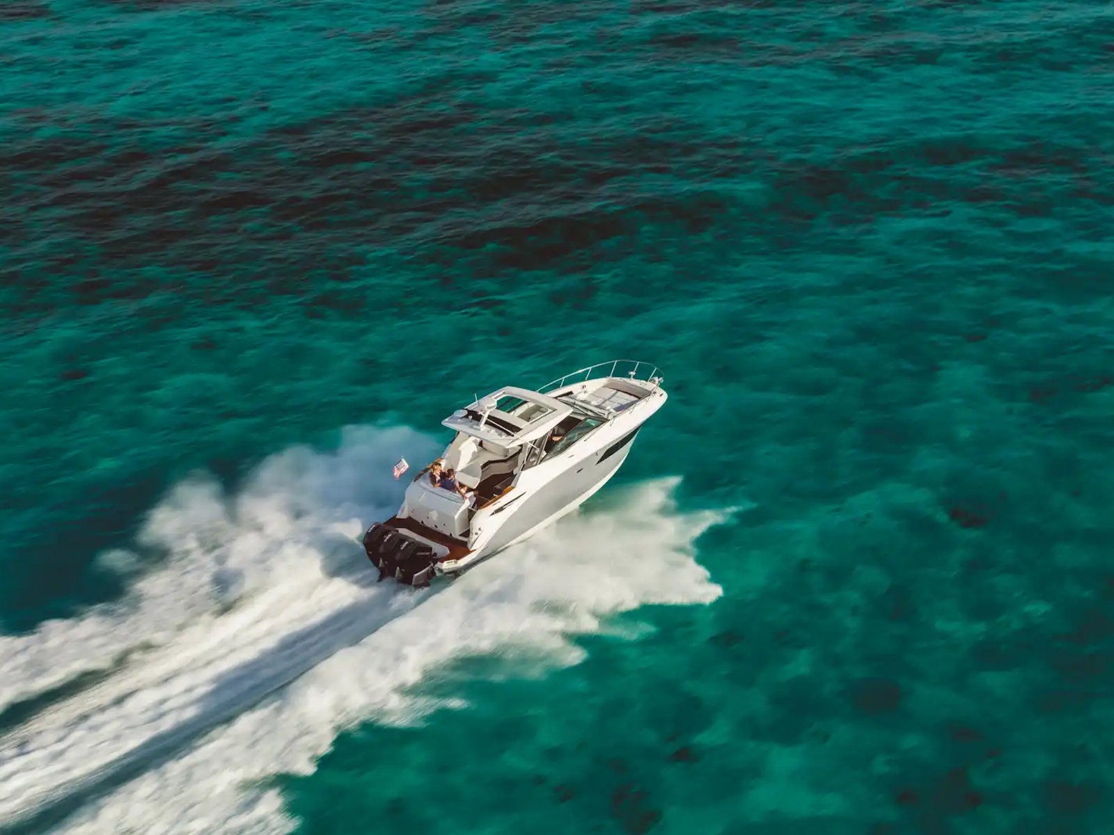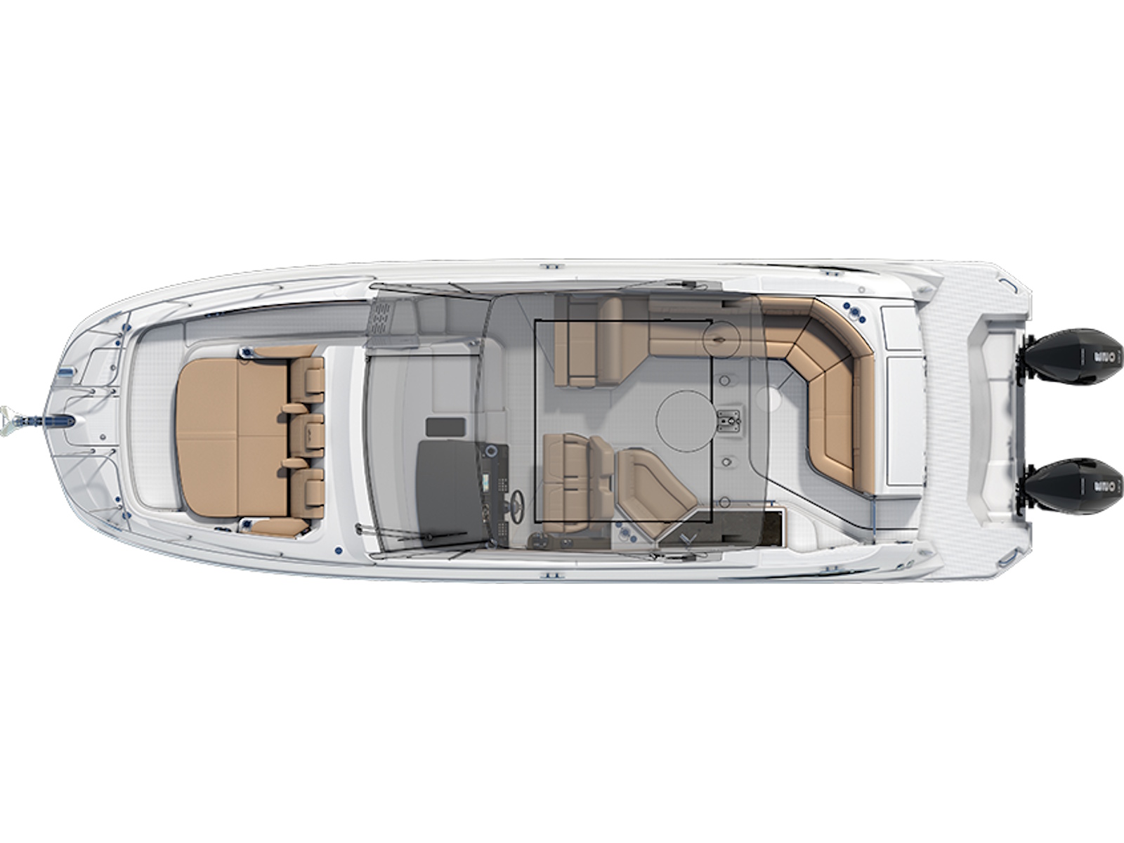 Outboard power comes with zero tradeoffs in terms of space, comfort or enjoyment on the Sea Ray Sundancer 320 Outboard. This boat is powered by standard twin Mercury® 350 Verado® V10 outboard engines with Joystick Piloting, SmartCraft® Digital Throttle & Shift (DTS) and e-Steering.