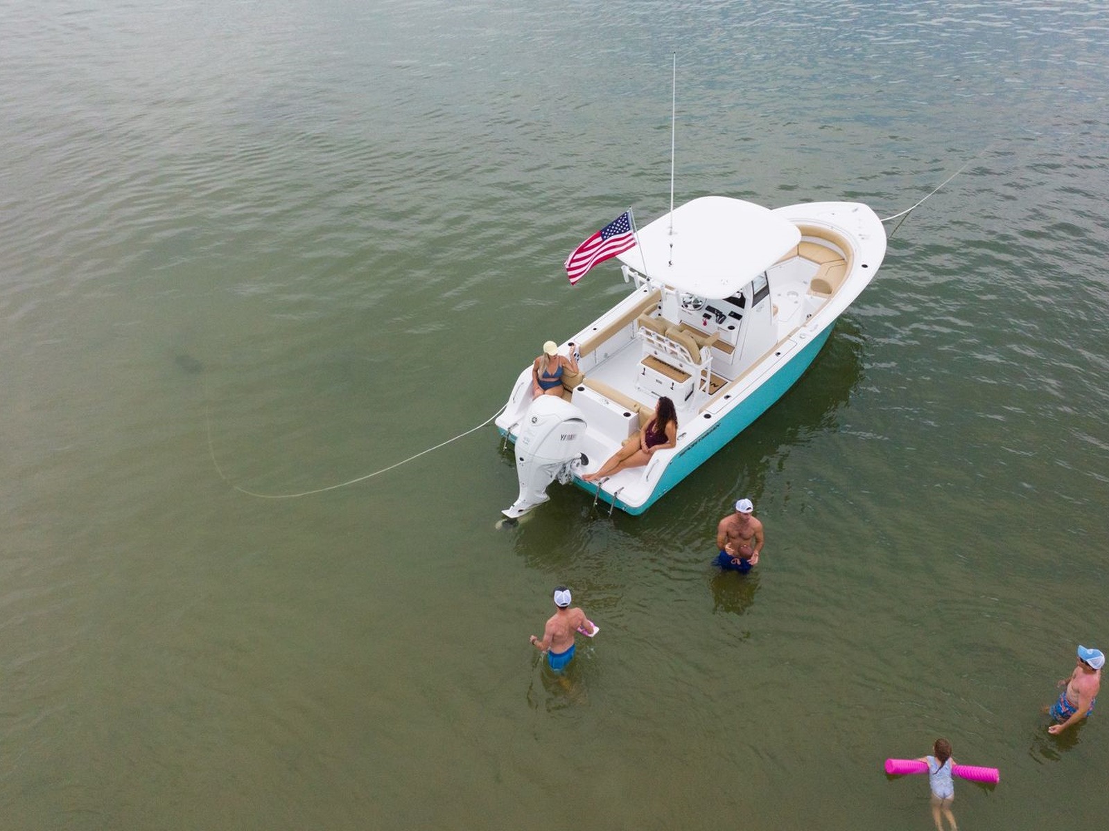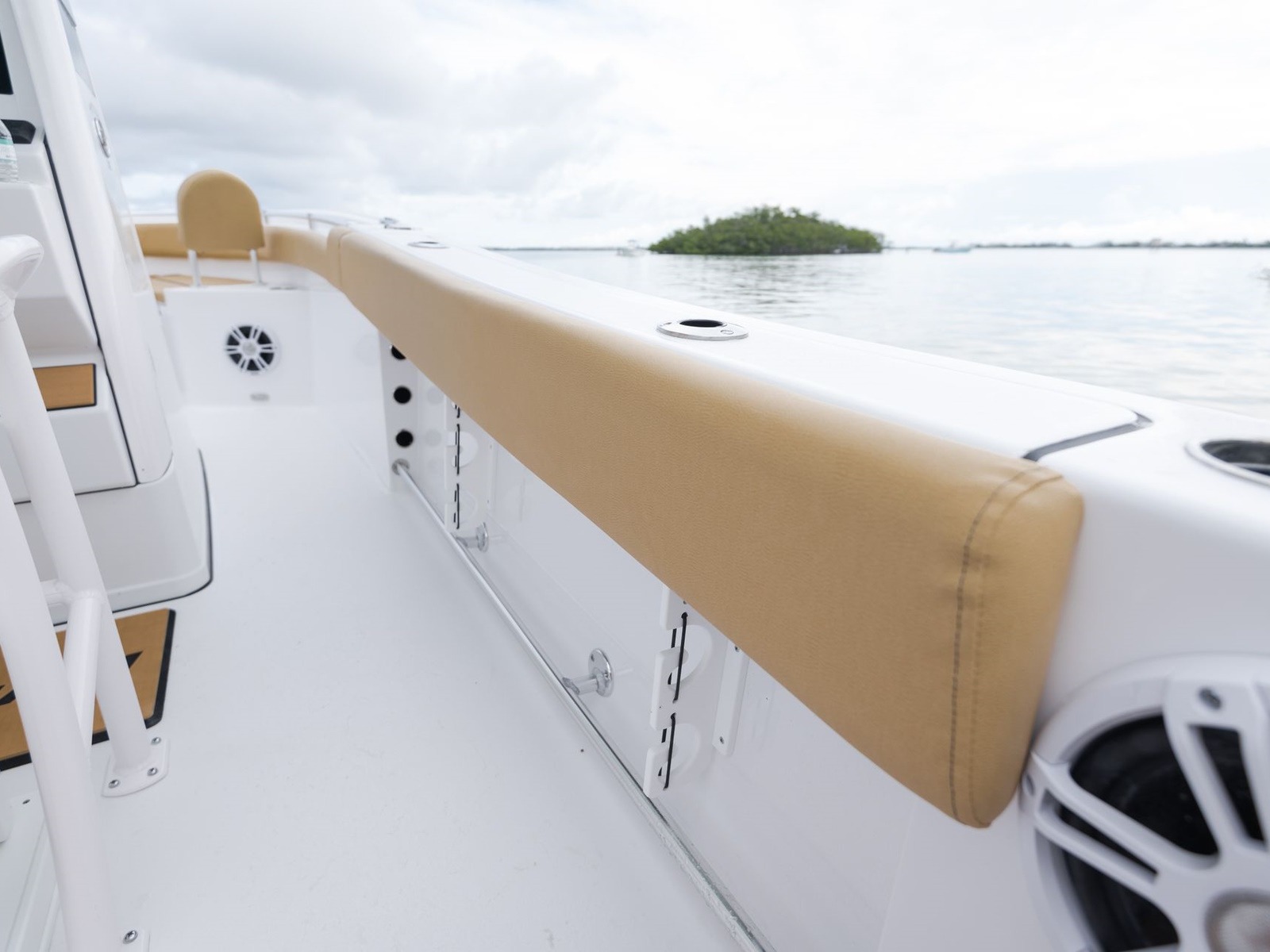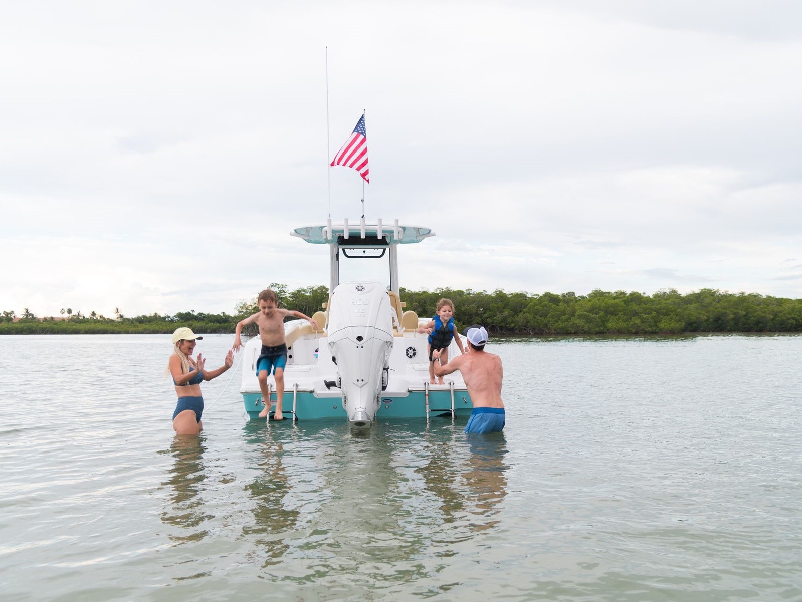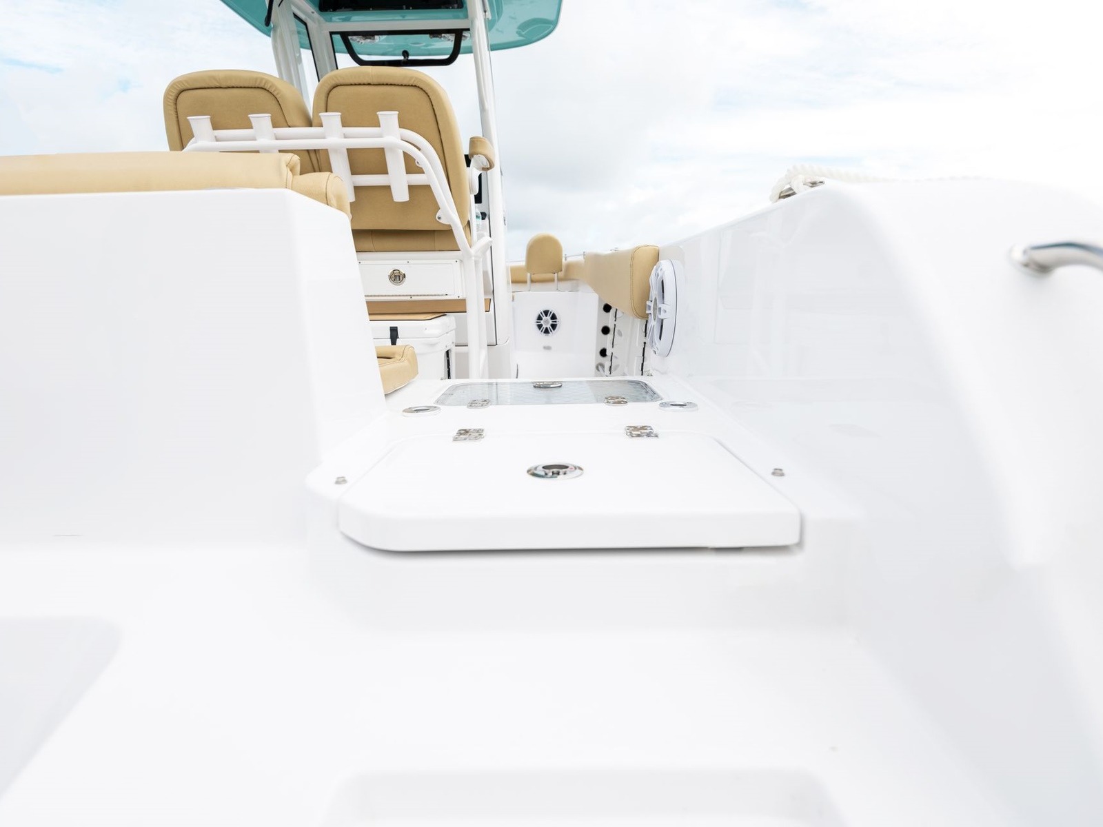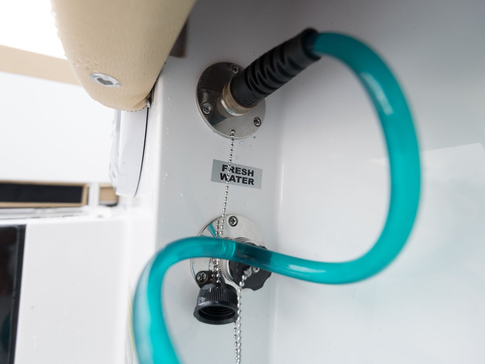 Comes standard with a freshwater washdown and a 15-gallon tank. Perfect for rinsing off the deck, cleaning up after landing a fish or washing off at the sandbar. It’s a simple comfort that quickly becomes essential.