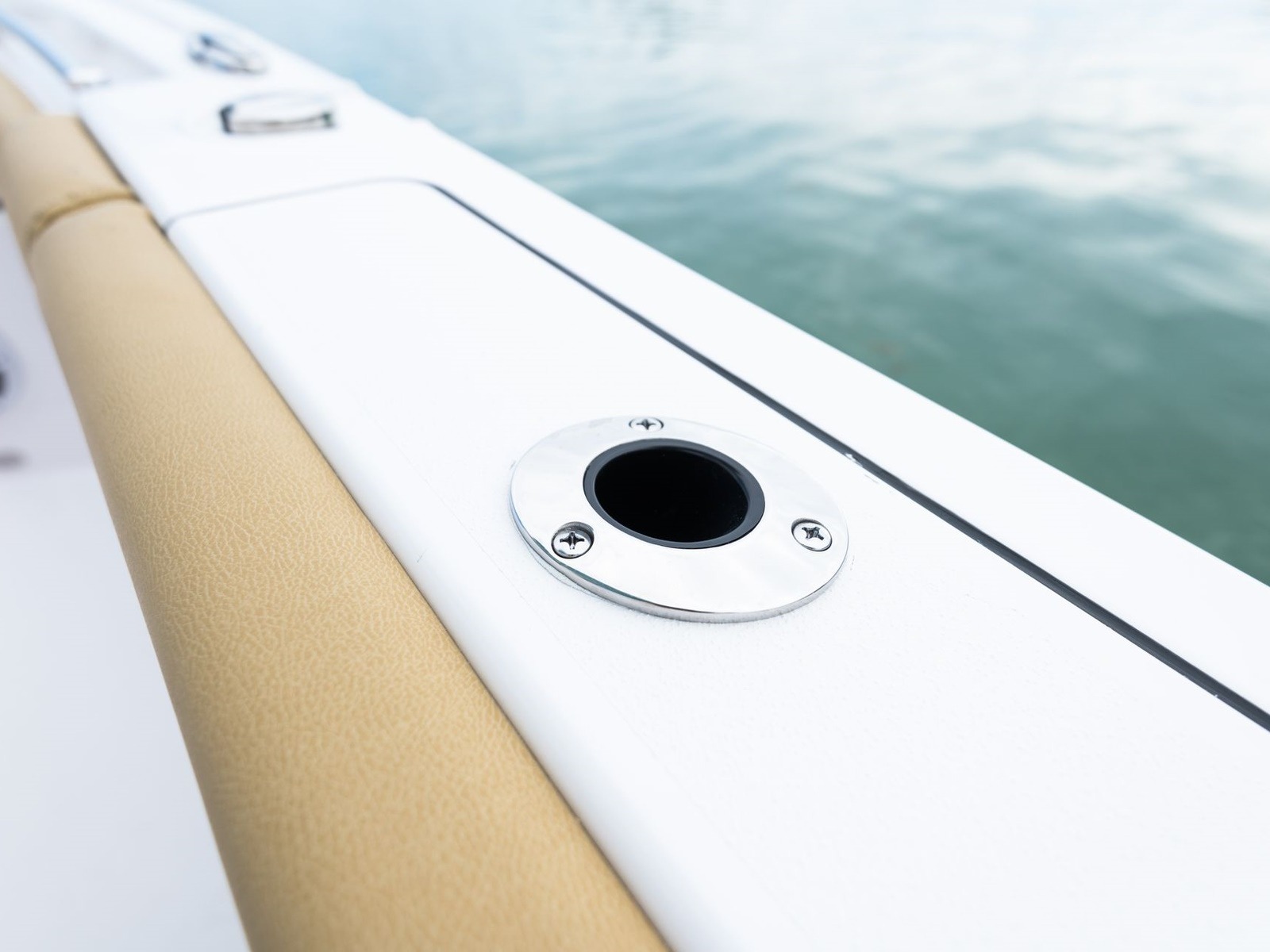 This boat includes 4 high-quality Gemlux rod holders flush mounted on the gunwale. Outside of the obvious use of holding fishing rods, you may add any number of available 3rd party accessories designed to be mounted in a rod holder.