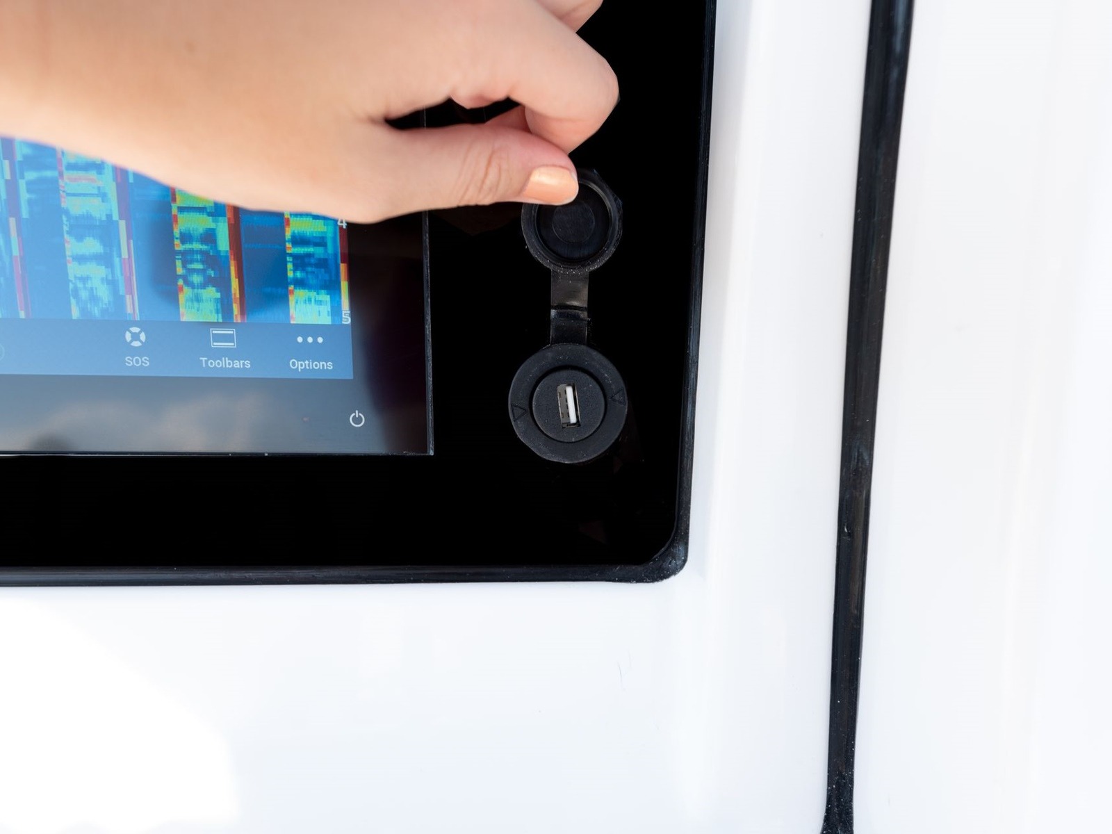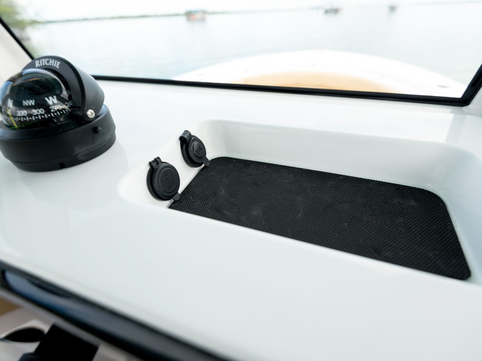 To keep your devices charged and ready, the helm includes two dedicated USB charging ports that operate independently from other systems. A 12V receptacle is also included for any cigarette-lighter style accessories.