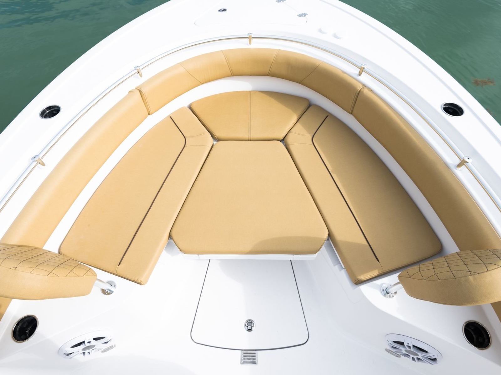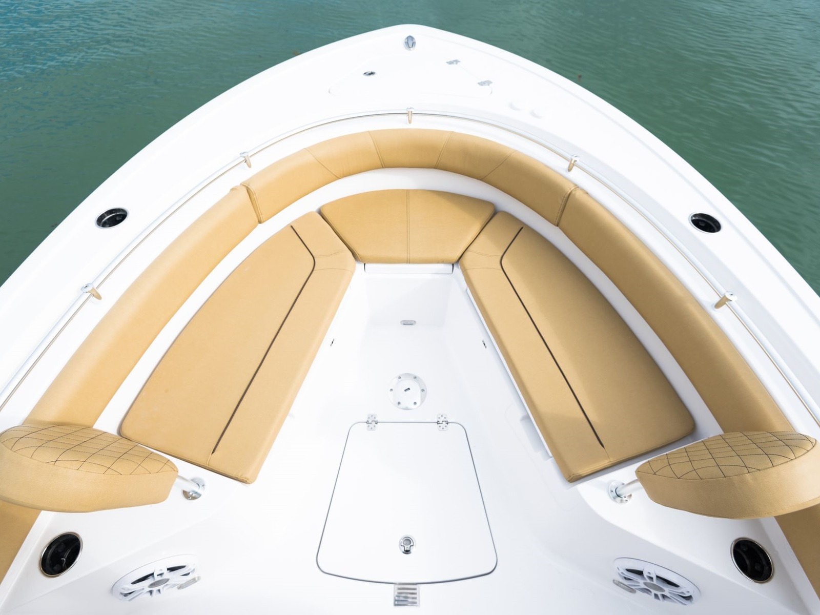 The Heritage 231 features a plush interior at the bow that prioritizes both capacity and comfort. By recessing the coaming bolsters and seat bottoms, we've created a deeper and more comfortable seating area for passengers at the front of the boat.