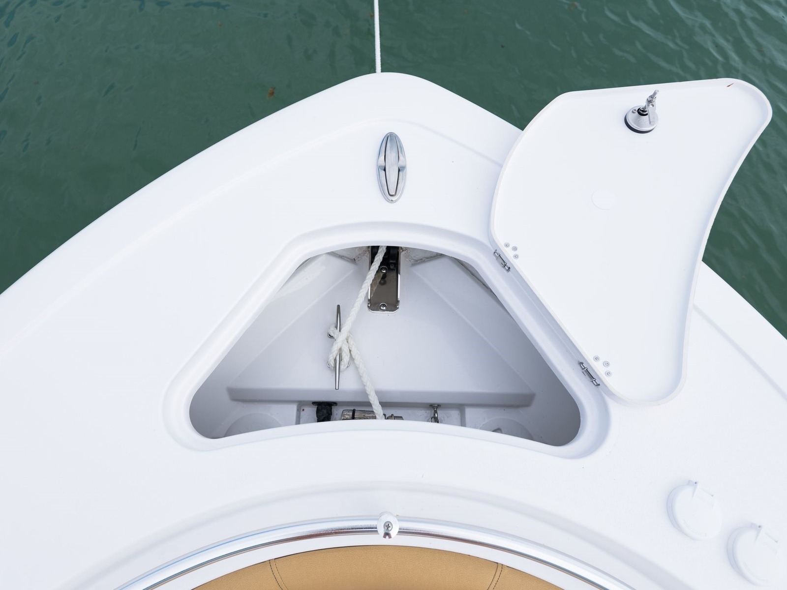 Stow away your anchor when not in use inside this large compartment. It features a molded catch for the anchor to keep it from falling in and the cut out for your rope on the lid makes it easy to store your extra rope neatly inside the compartment.