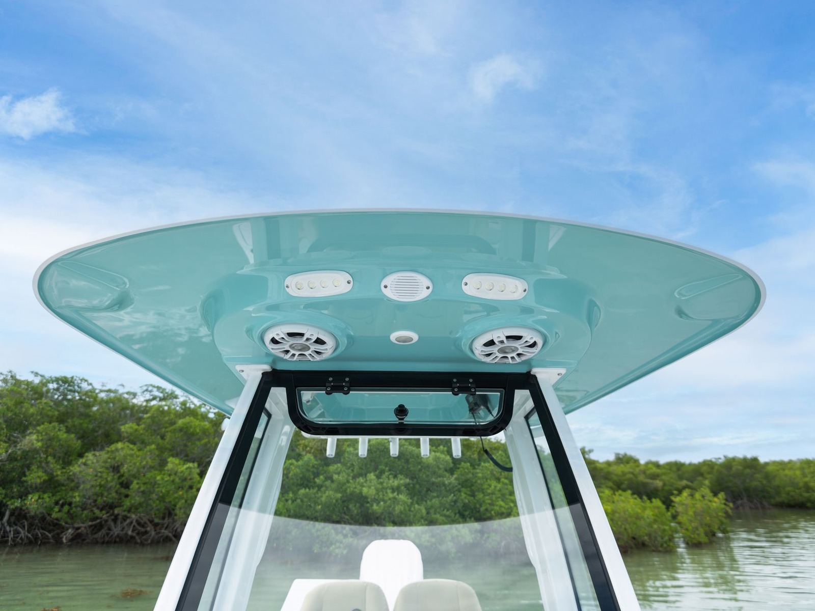 A popular trend is to have the underside of the hard-top matched to the hull color, this adds additional appeal and ties in the color theme of the boat sides by bringing additional color to the cockpit area.