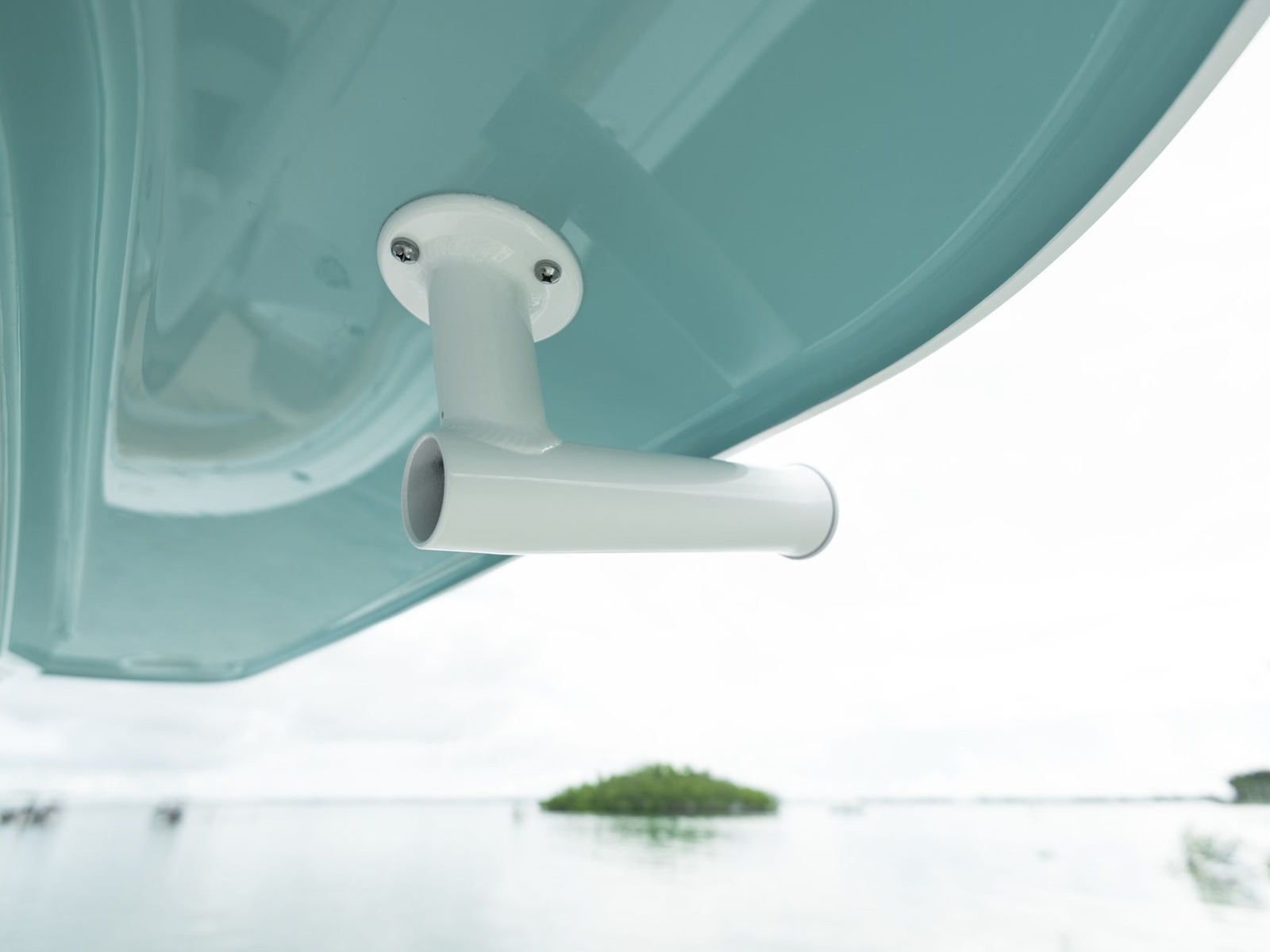 These hard-top rod holders point straight off of the side of the boat and allows you to extend your spread out further than you could with the gunwale-mounted rod holders. The height also keeps them away from any rods in a deck rod holder.