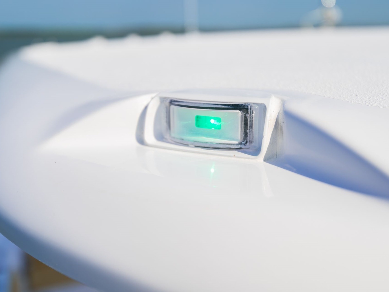 When the sun goes down, molded in navigation lights can be found at the front corners of the hard-top. This location keeps them out of the way and completely unobstructed.