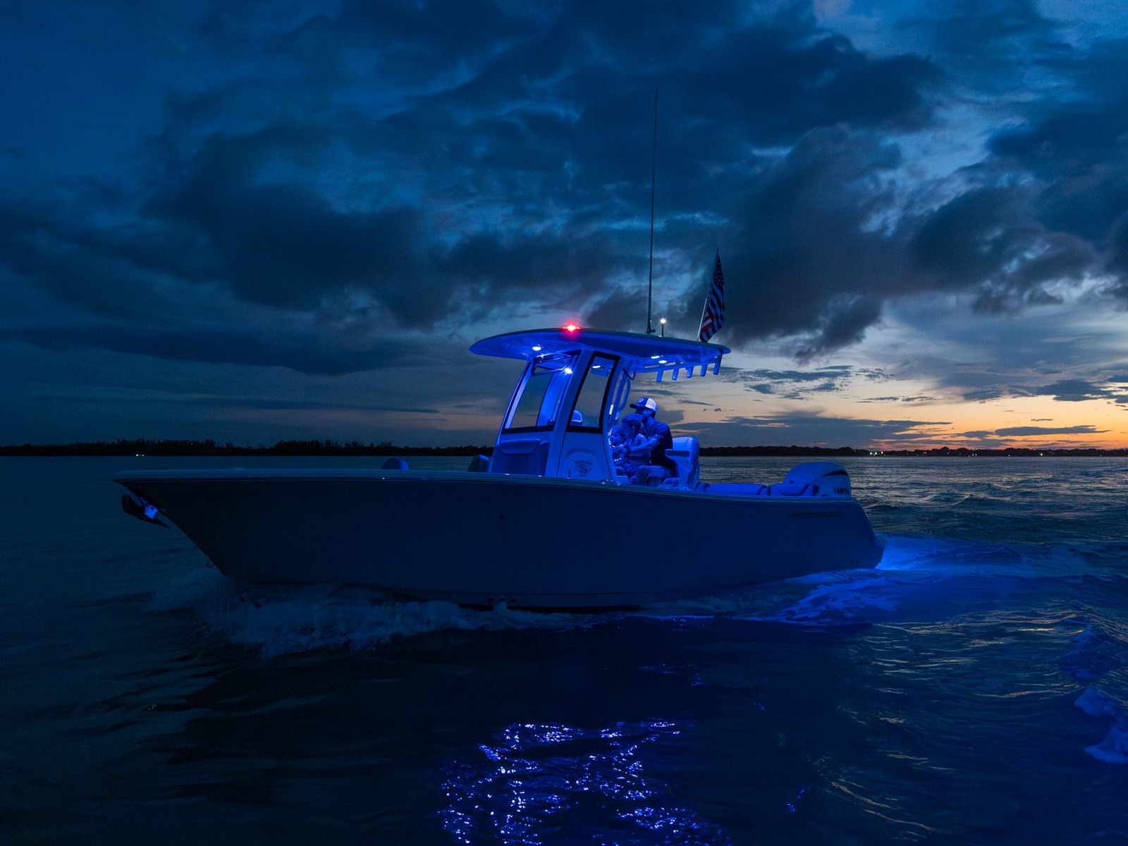 The spreader lights on the hard-top provide deck work lights for early morning or late-night trips.