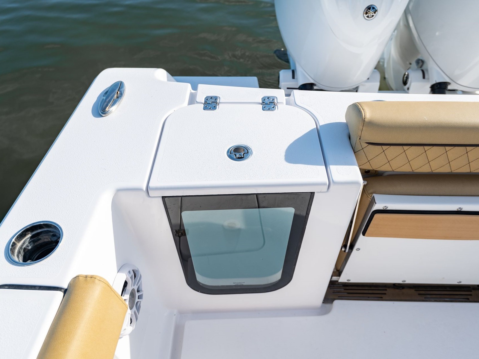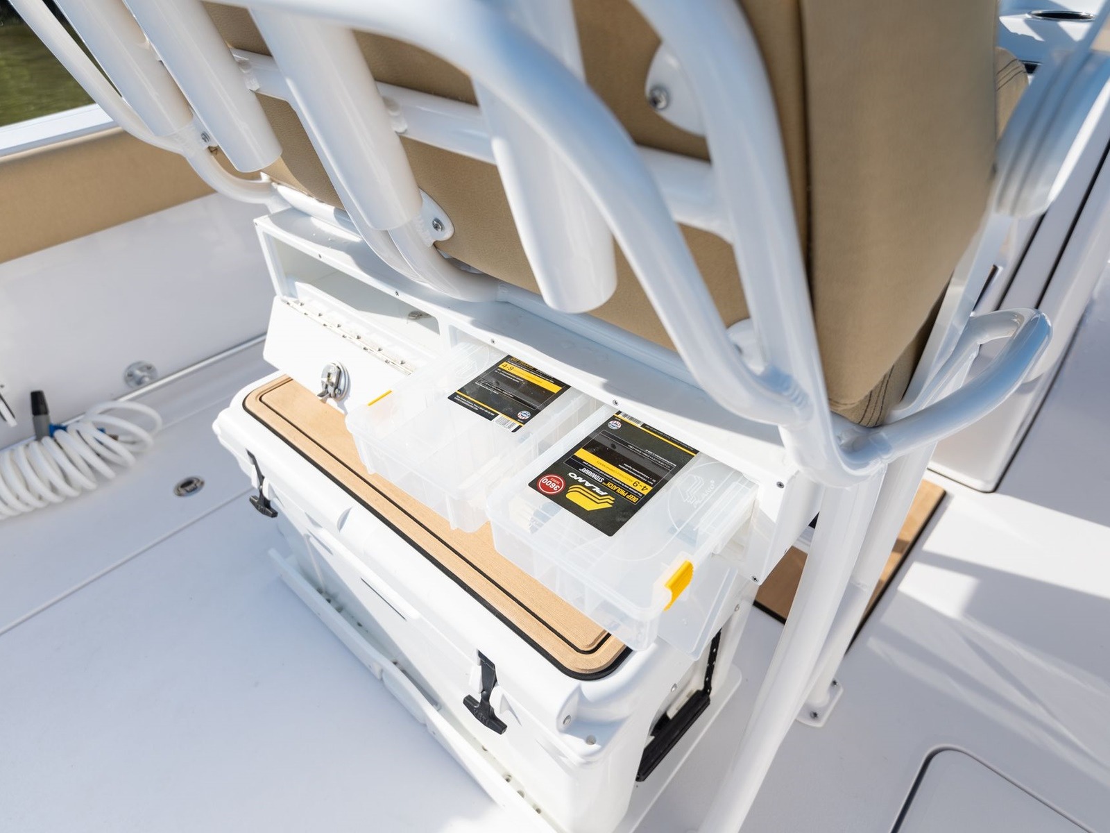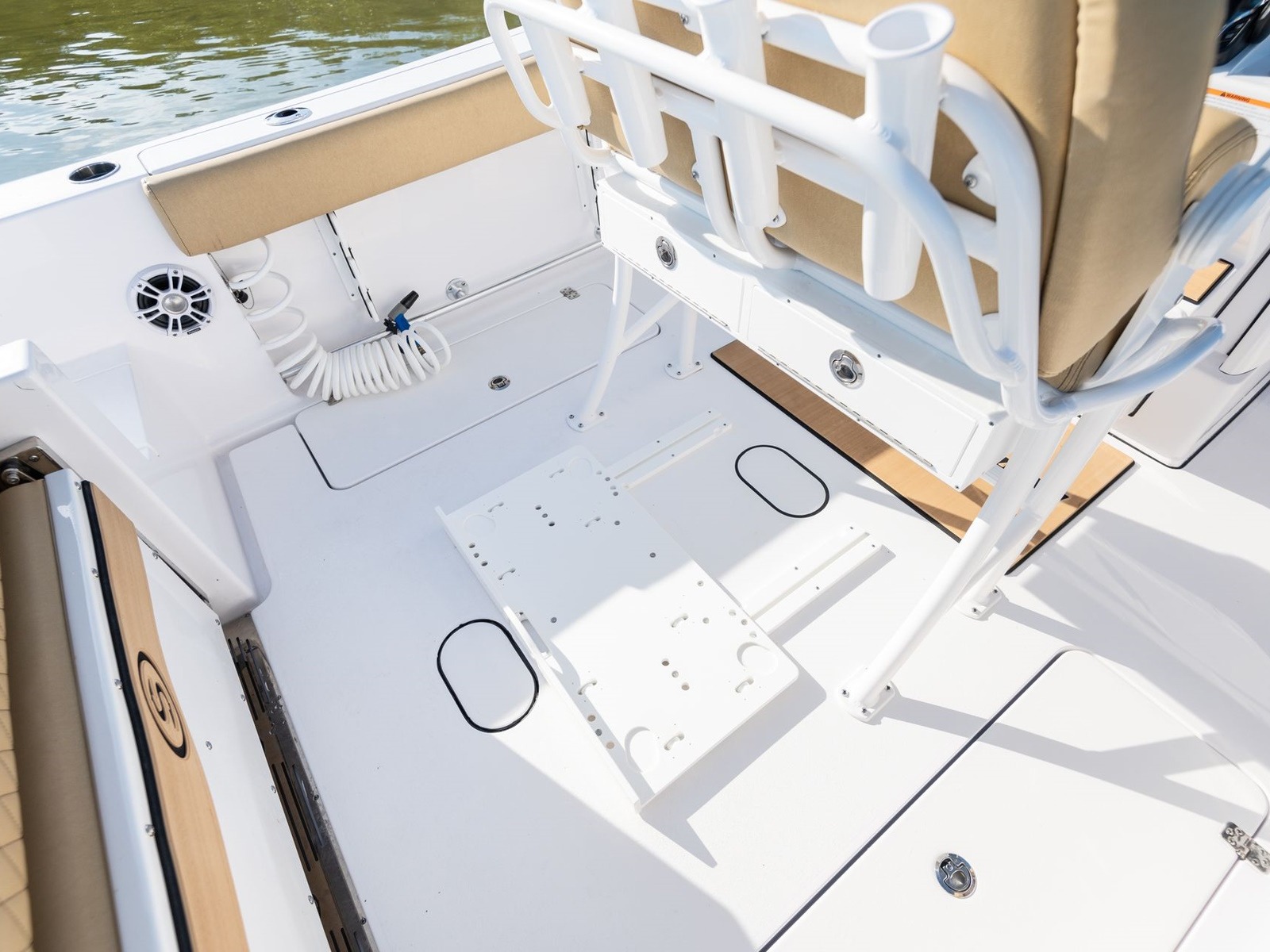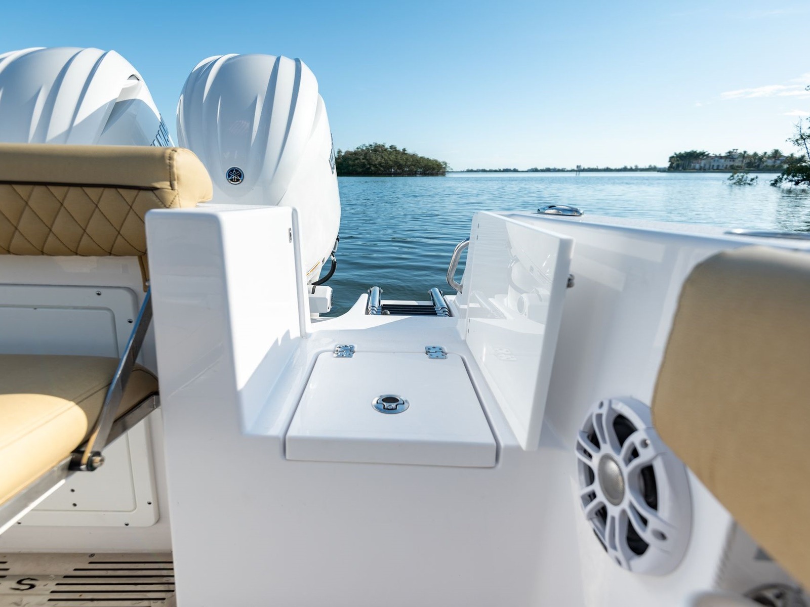 Comes standard with a freshwater washdown and a 15-gallon tank. Perfect for rinsing off the deck, cleaning up after landing a fish or washing off at the sandbar. It’s a simple comfort that quickly becomes essential.