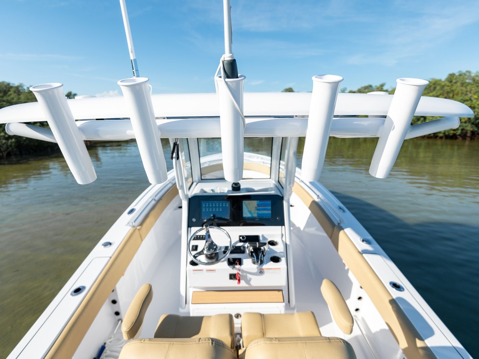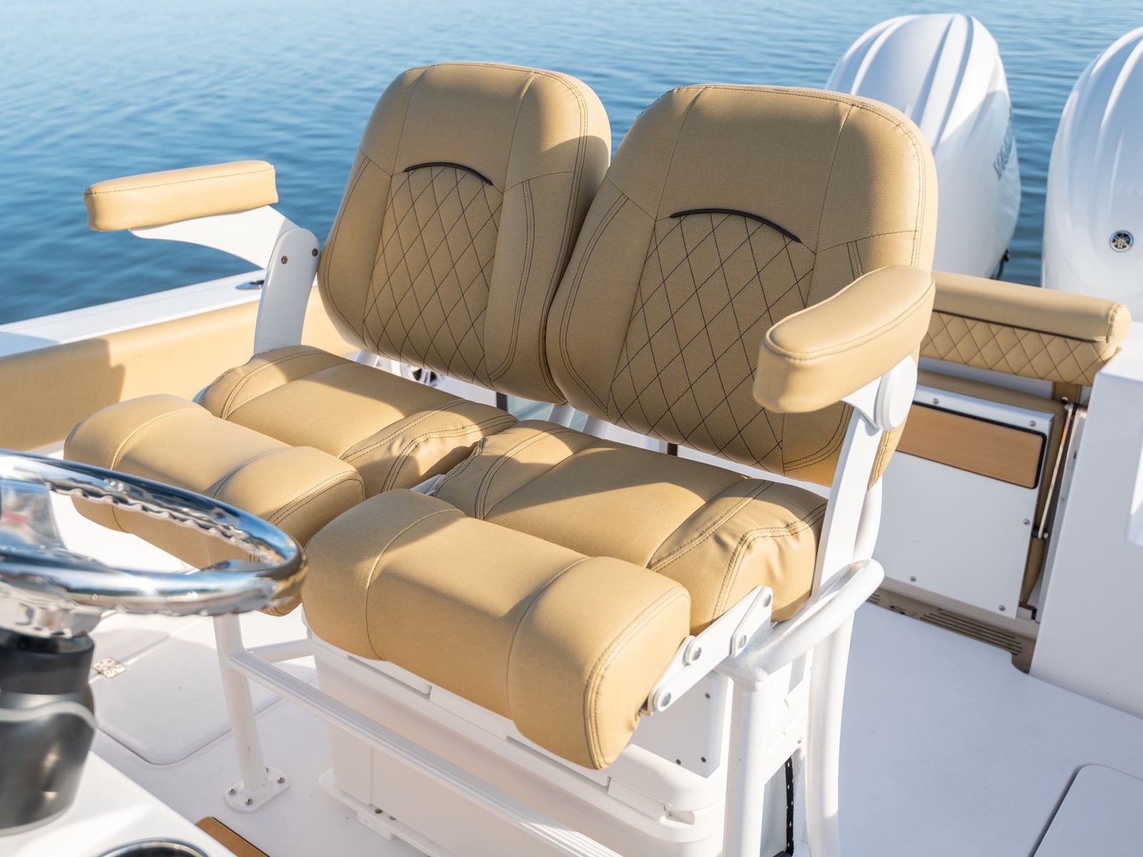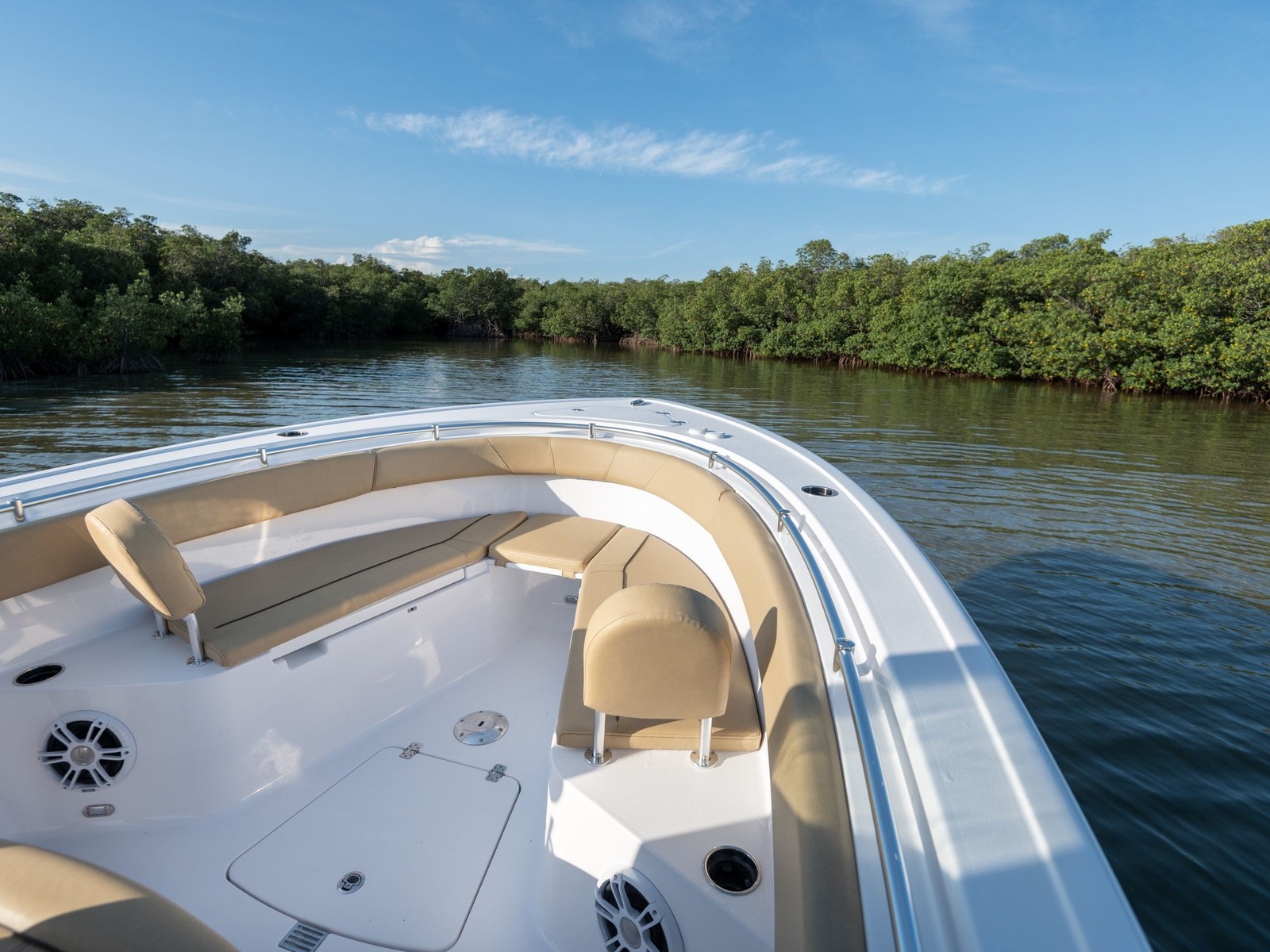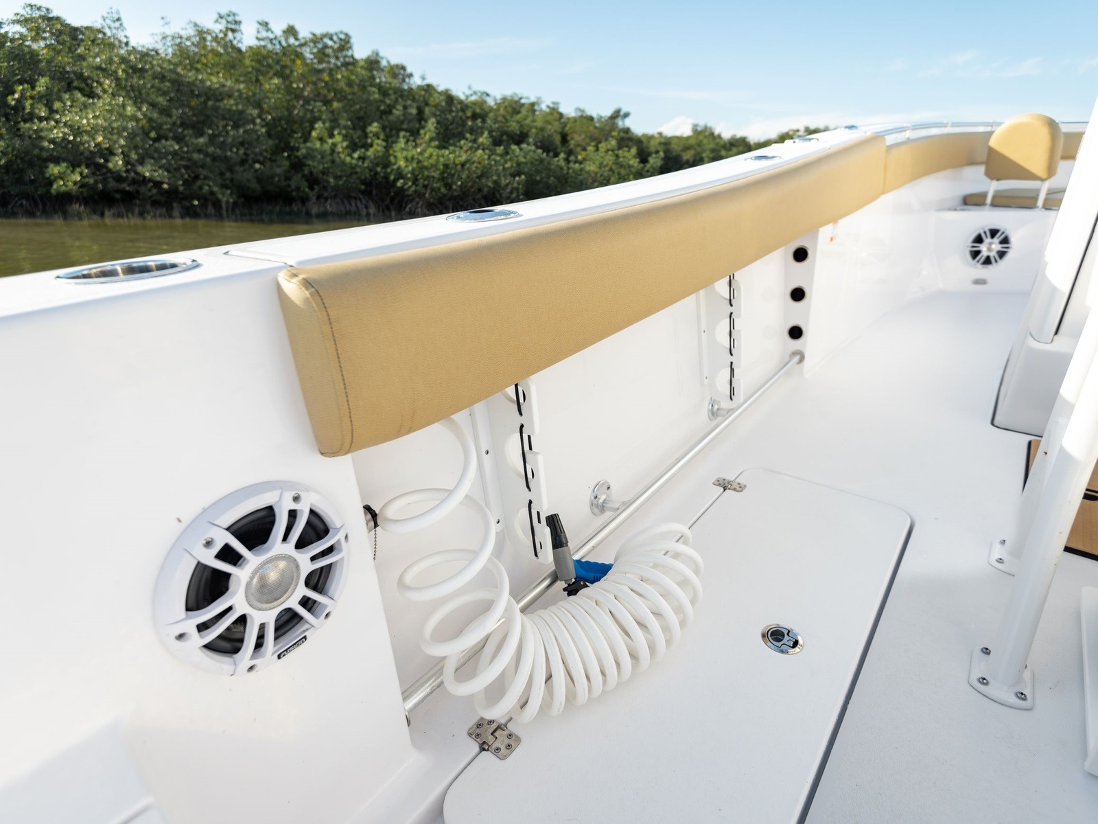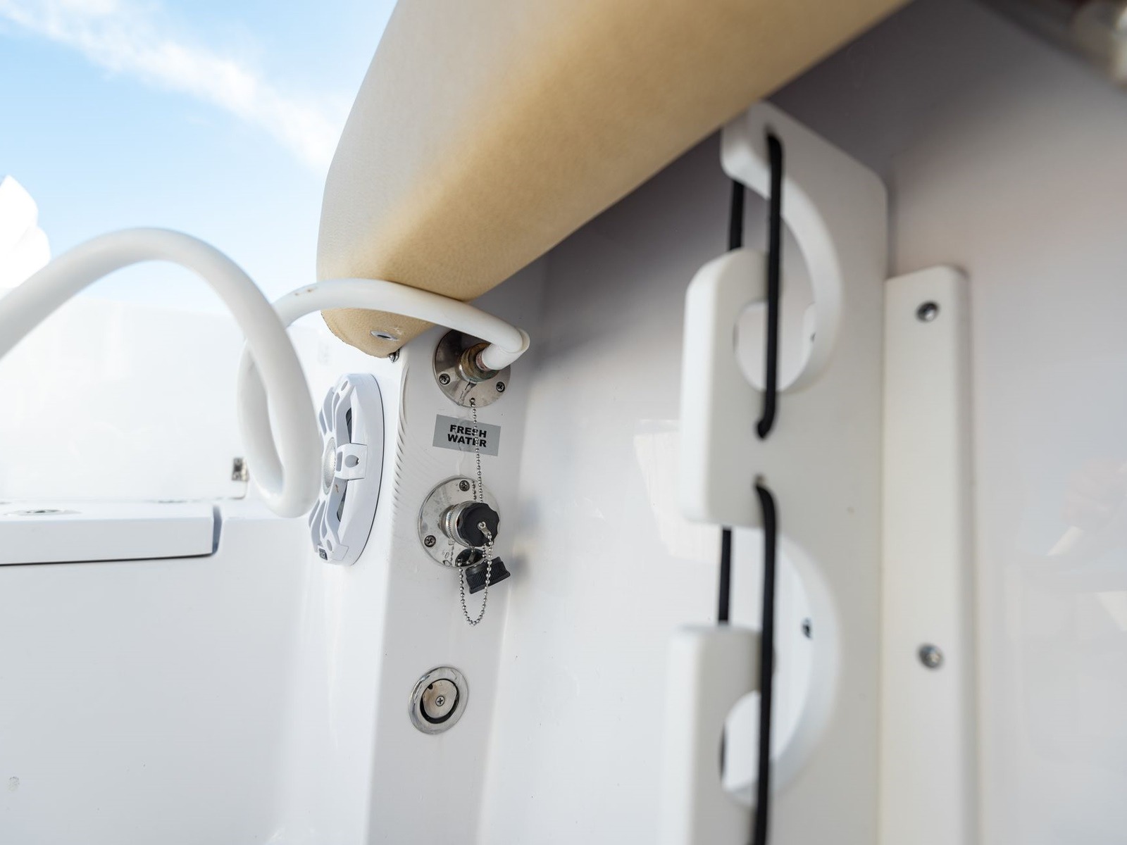 Comes standard with a freshwater washdown and a 15-gallon tank. Perfect for rinsing off the deck, cleaning up after landing a fish or washing off at the sandbar. It’s a simple comfort that quickly becomes essential.
