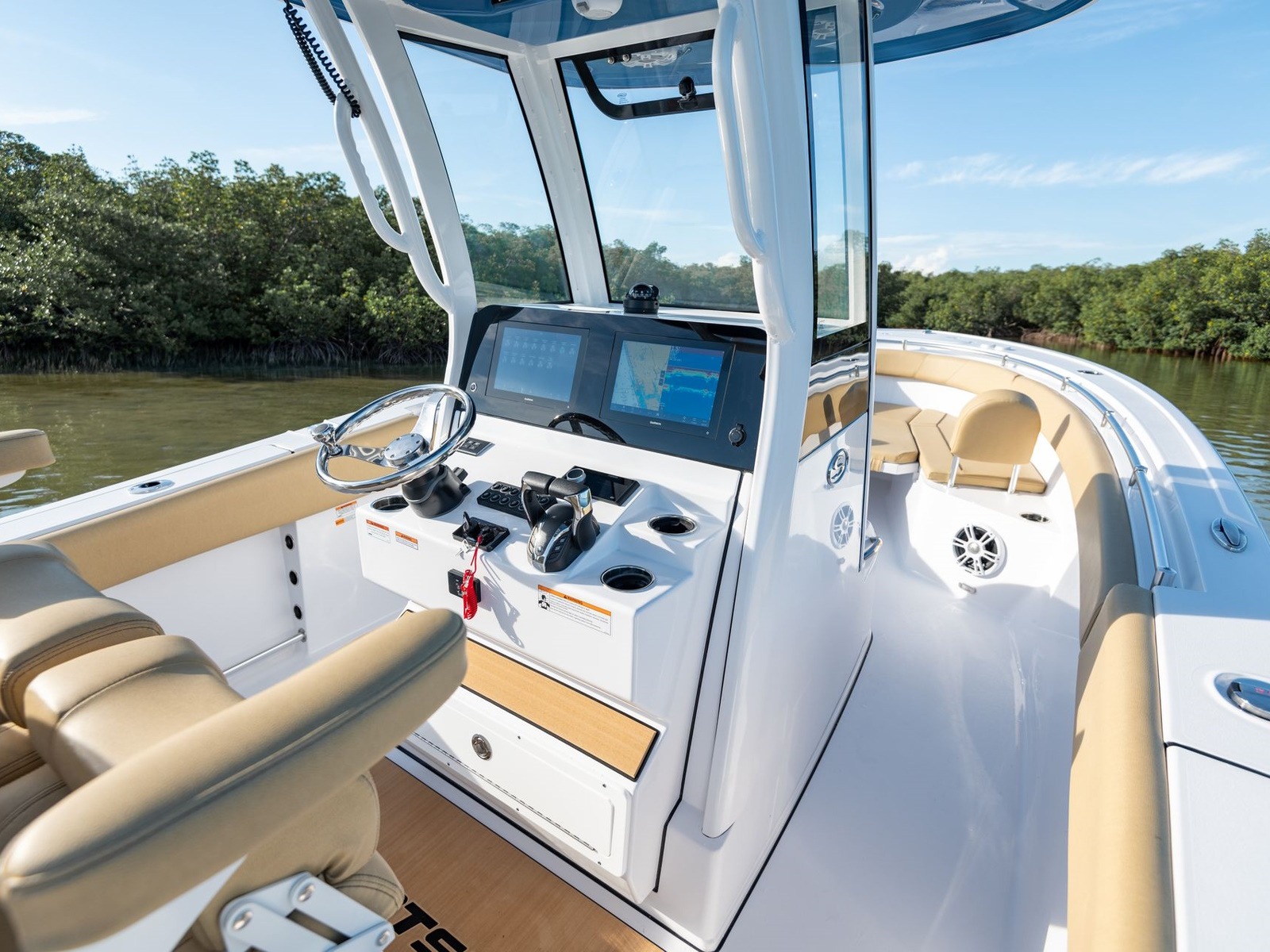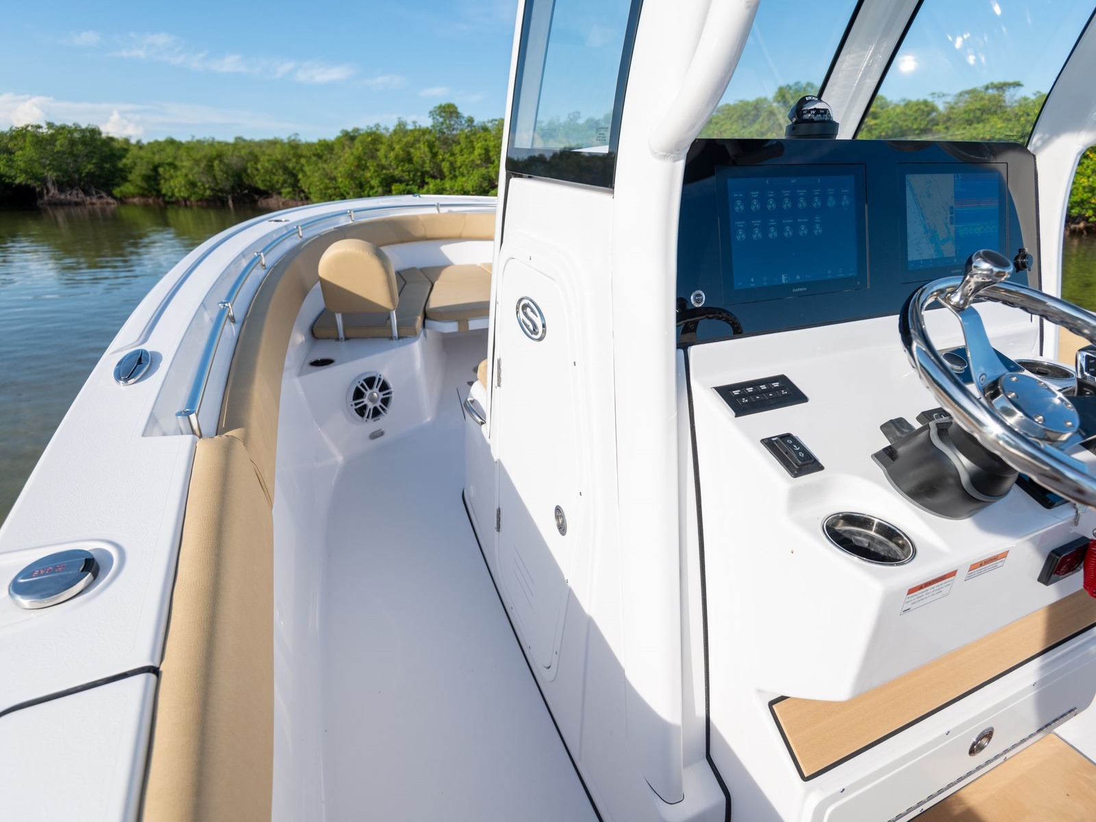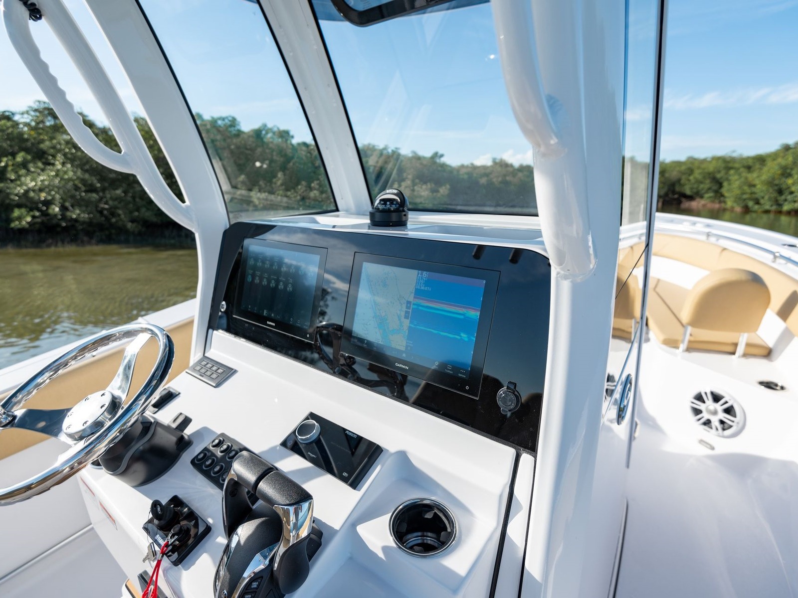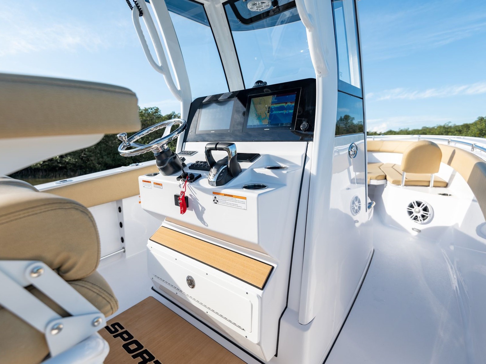 SportLink® is our factory-installed electronics integration system, designed to give you a seamless, turn-key experience at the helm. It includes Garmin displays, JL Audio sound, digital switching on all models with custom Graphics Interface on your displays and a full NMEA 2000 network, all pre-installed and connected for you. Every component is engineered to work together from the start, eliminating the need for aftermarket installs or guesswork down the line.