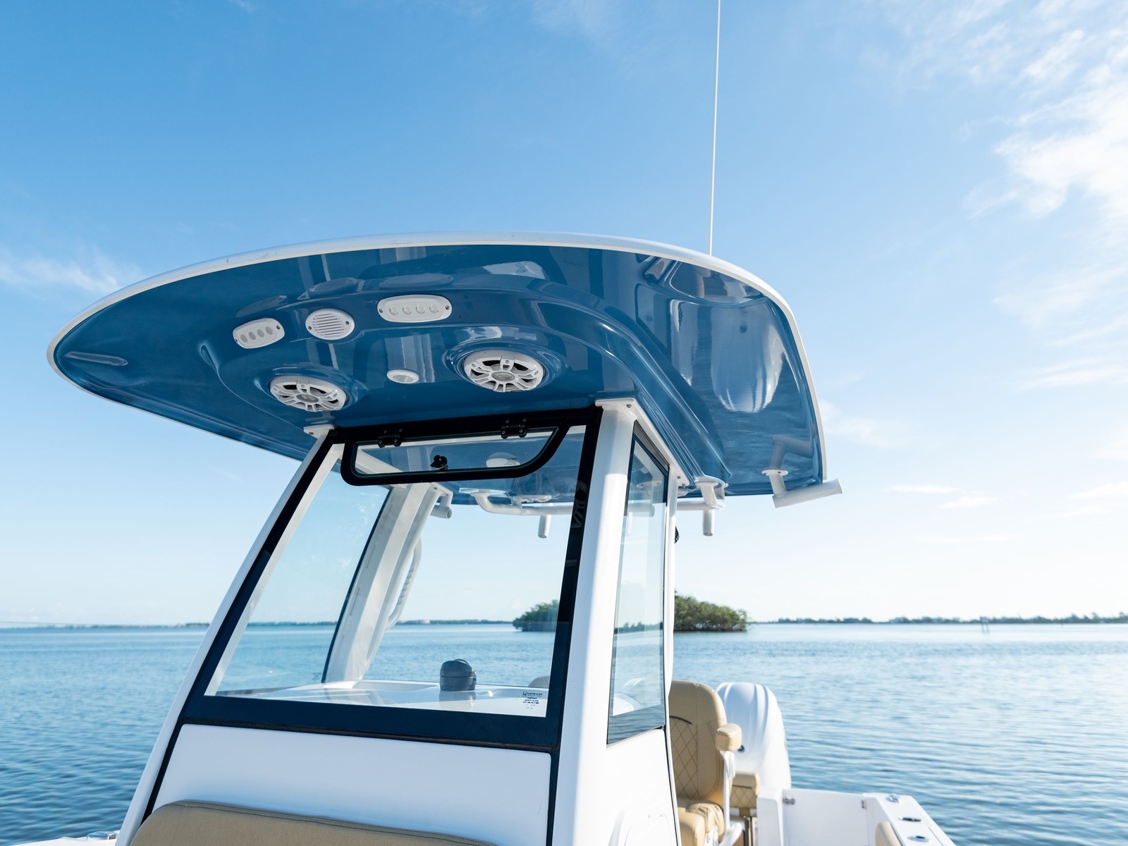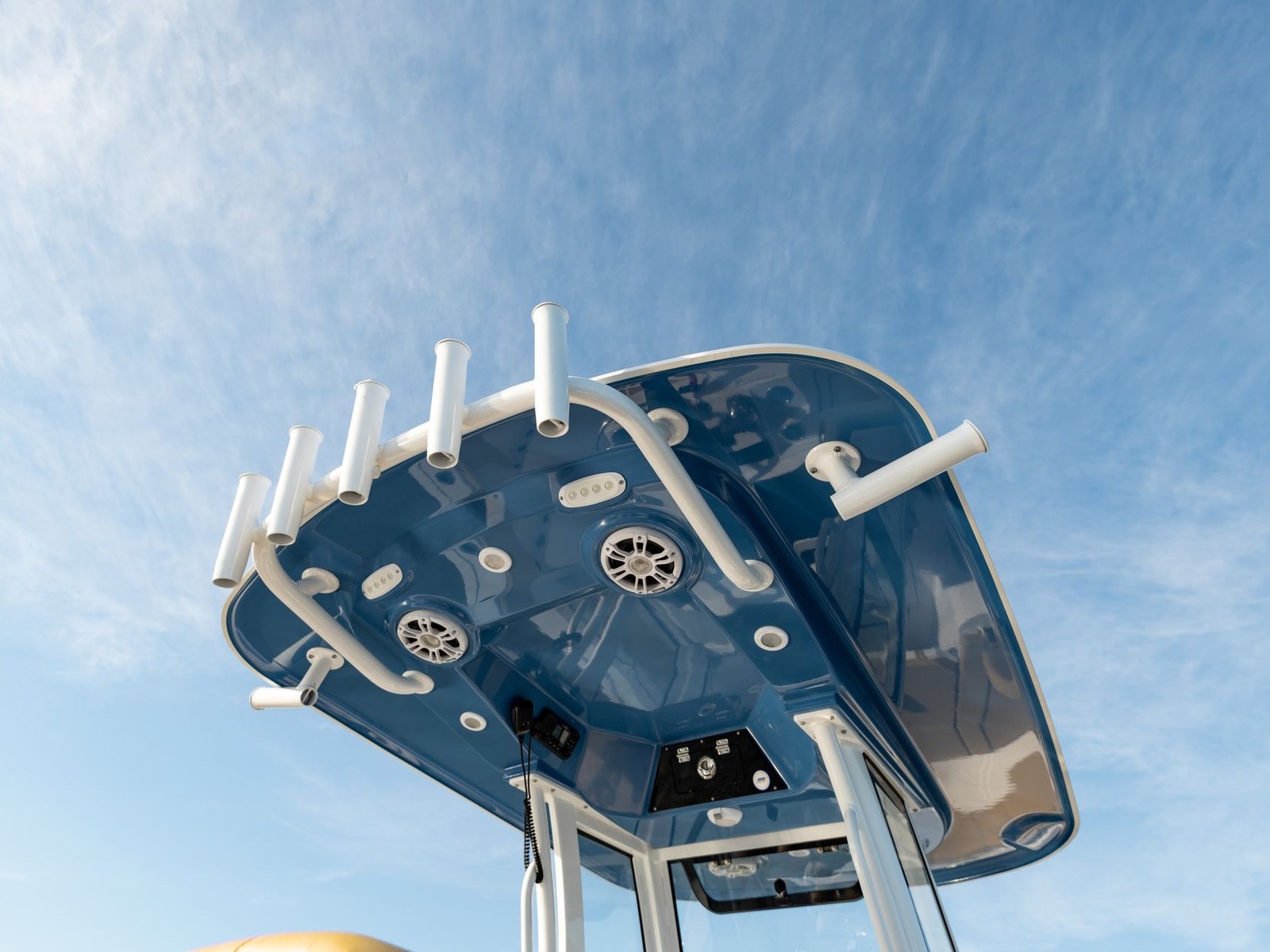 A popular trend is to have the underside of the hard-top matched to the hull color, this adds additional appeal and ties in the color theme of the boat sides by bringing additional color to the cockpit area.