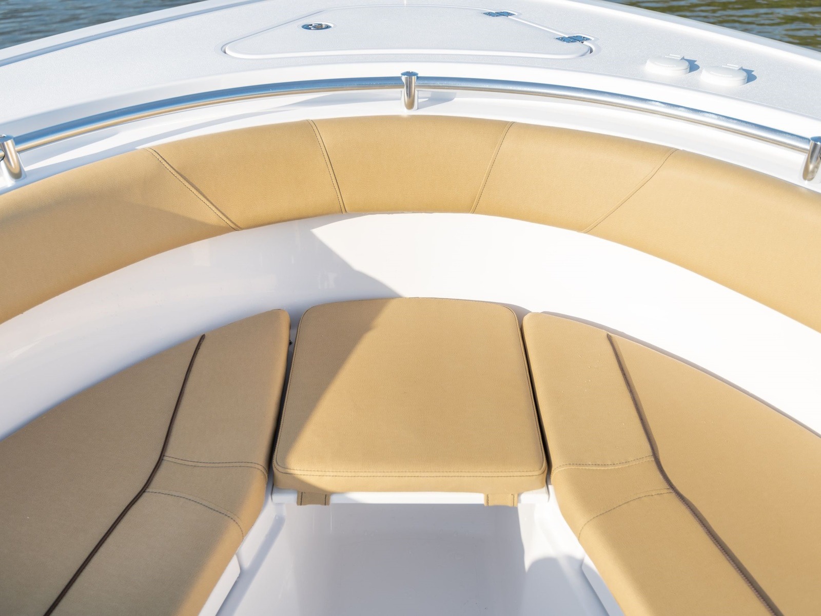 The open bow design offers the convenience of a full walk-through to your anchor and bow but sometimes you may need some additional seating, this filler board with cushion latches securely opening up one additional seat and 2 cupholders.
