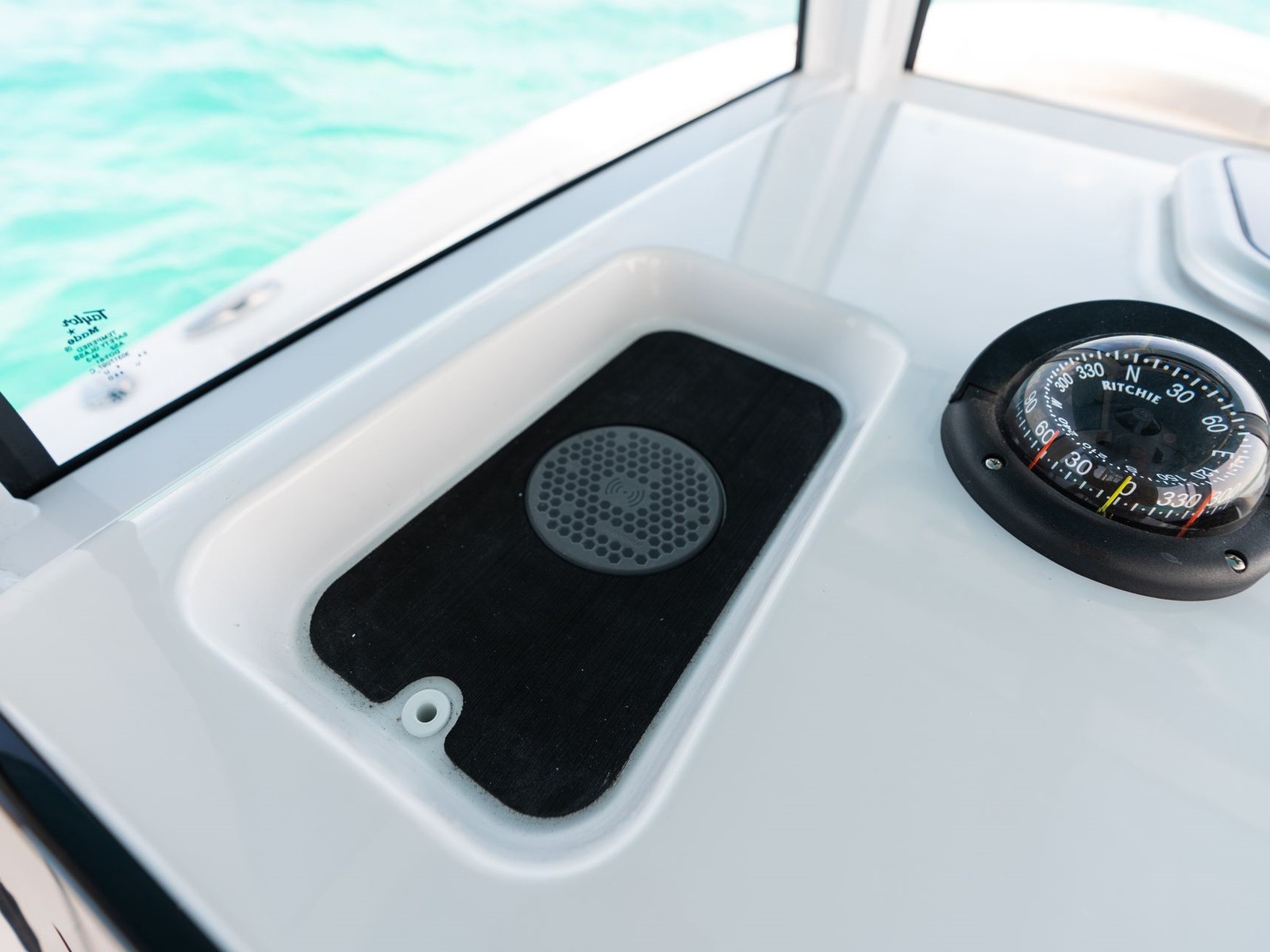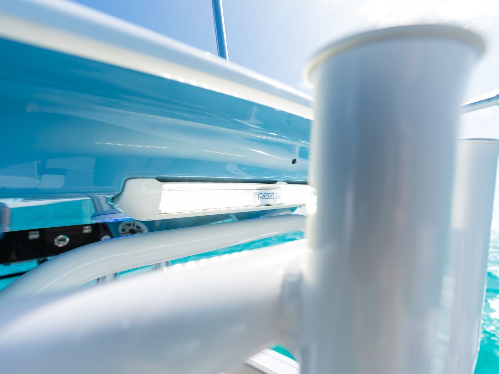 - At the front of the top, another molded in Lumitec 18” Razor Light Bar but this one is a spot, perfect for illuminating the way as you are coming in after a sunset cruise.
