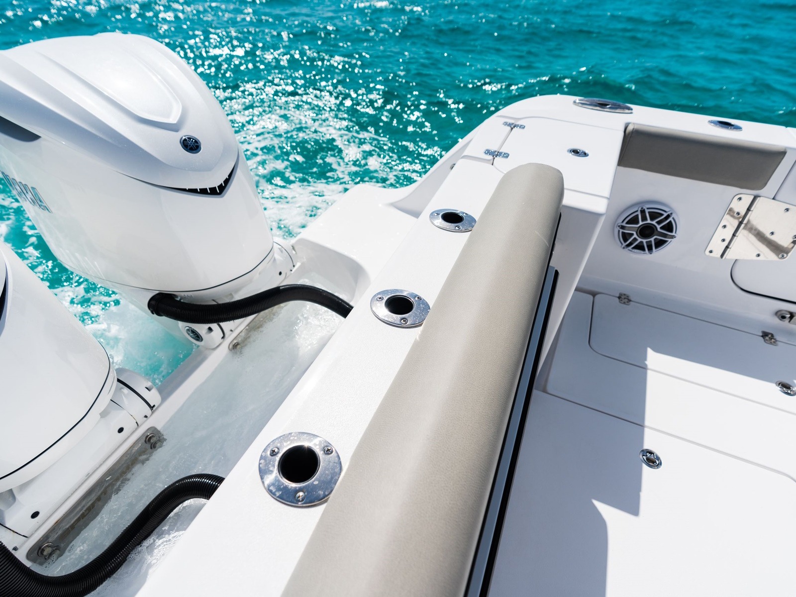 - Molded-in Lumitec 18” Razor Light Bar that will flood the rear cockpit, gunwales and surrounding areas with more than 10,000 lumens, perfect for those late night and early morning fishing trips.