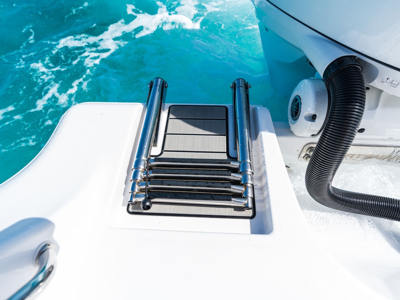 - Easily board your boat from the starboard side with the standard 4-step ladder. It stows away recessed into the deck.