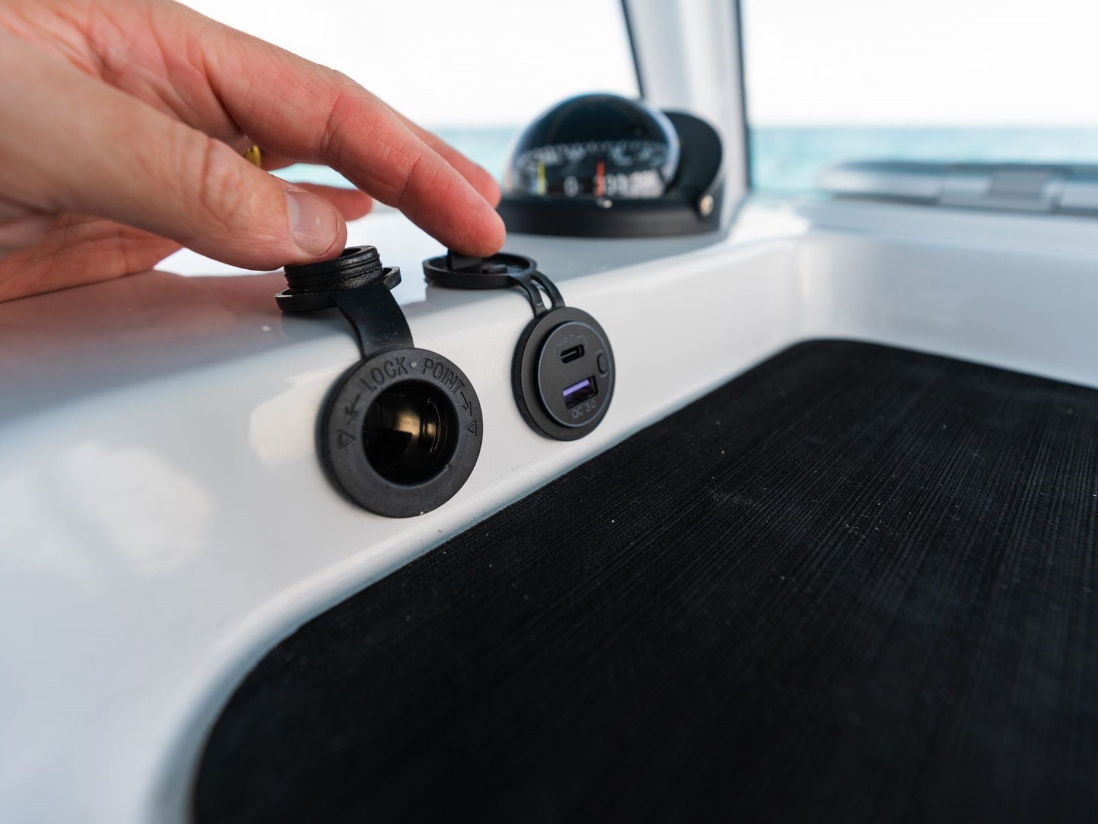 - To keep your devices charged and ready, the helm includes two dedicated USB charging ports that operate independently from other systems. A 12V receptacle is also included for any cigarette-lighter style accessories.