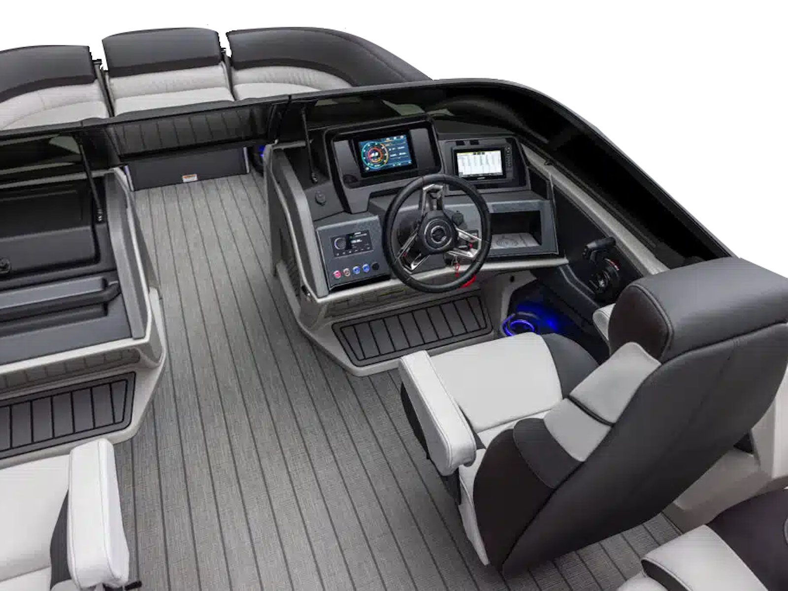 - Waveglider triple 25” pontoons w/high performance lifting fins, ski tow bar & aluminum waveshield (ELW & QLW)
