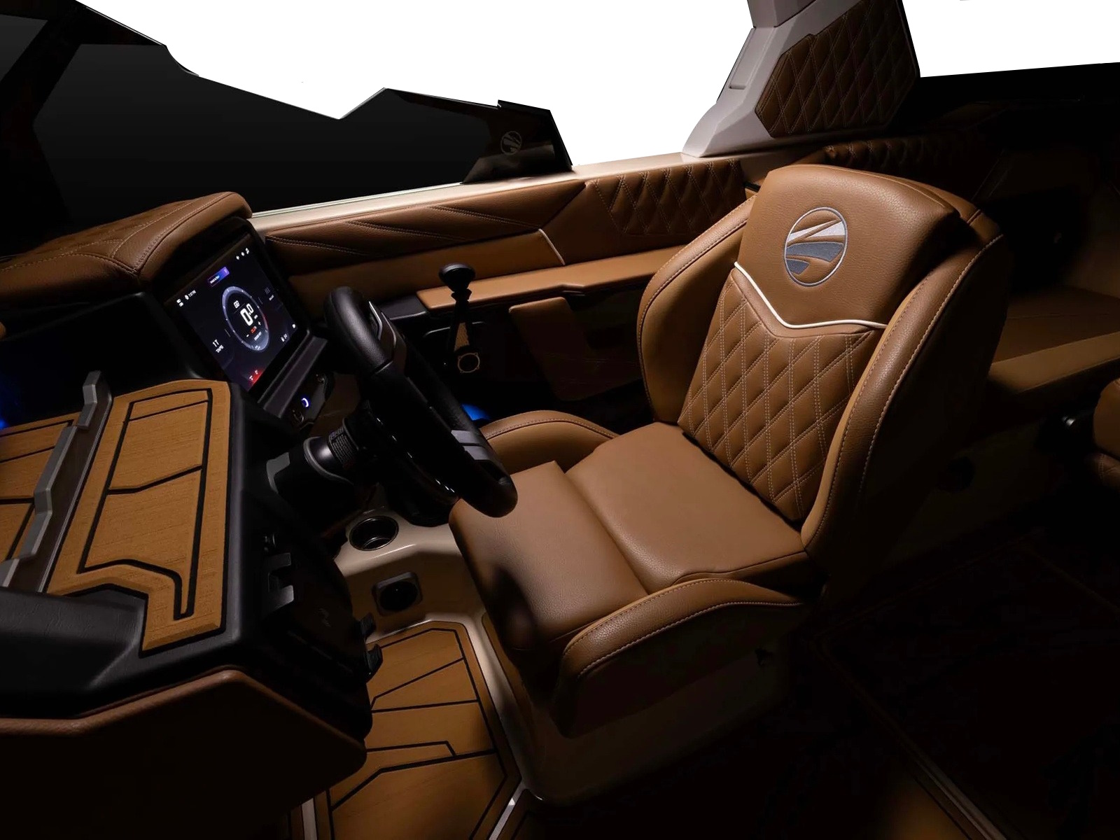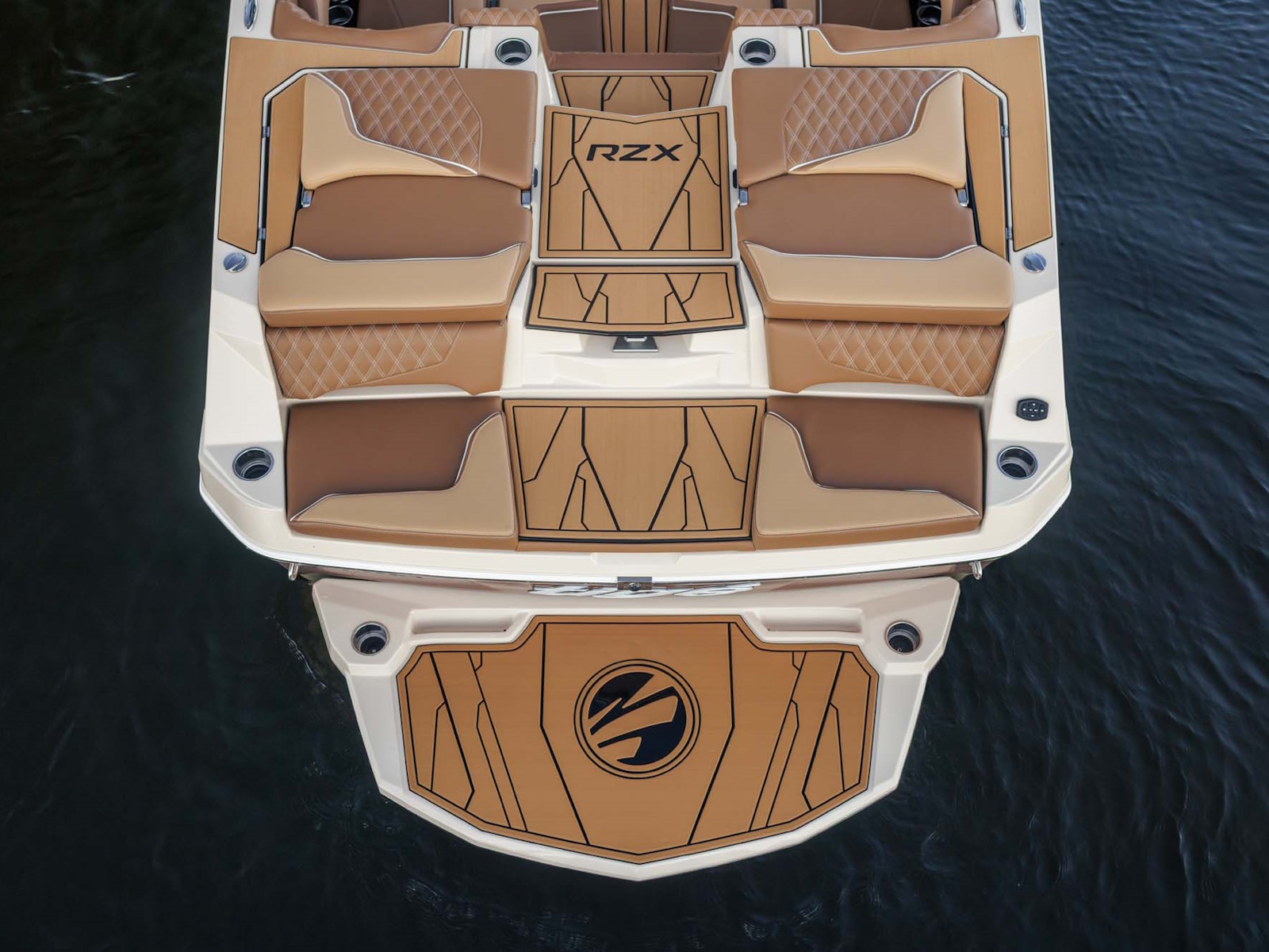 The bold redesign of the 22RZX is clear the moment you step inside. From functional bow seating to expansive storage, every inch of this luxury boat interior is designed for maximum form and function. The double diamond stitching elevates the premium wake boat experience, while incredible depth lets you fully sink into the ride. This is craftsmanship that performs as beautifully as it looks.