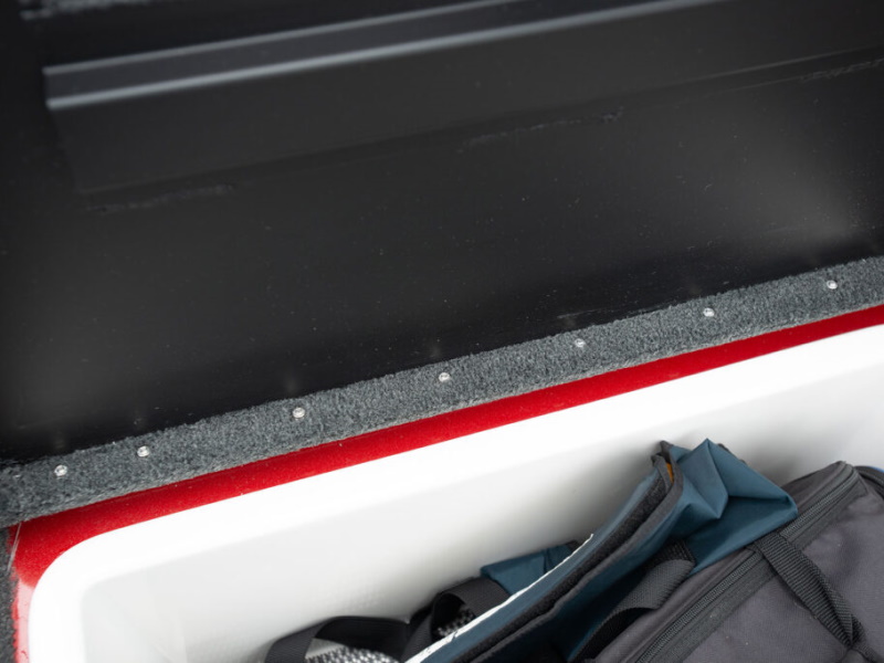 Ergonomic color-matched fiberglass console with push button LED switches, USB charge, and room for 12” electronics.