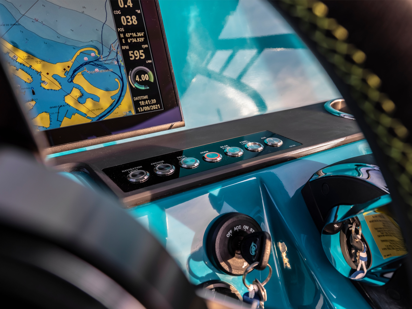 The walkaround center console allows for seamless movement, giving you better control in situations such as mooring. The center console also includes a large storage compartment/optional toilet compartment.