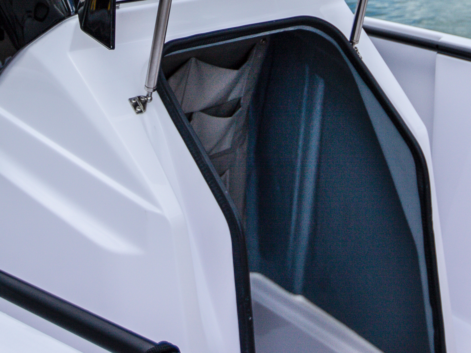 Further enhancing safety on board, grab rails are fitted as standard, running along the gunwales to let you move safely along the deck. Surface treated with a stylish black coating.