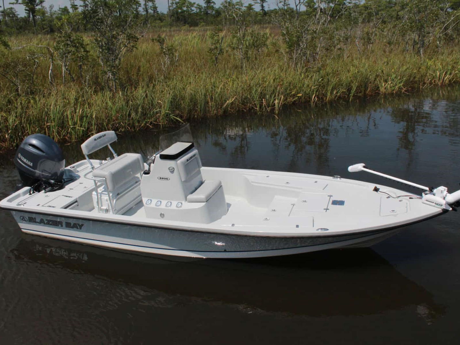 The Blazer Bay 2200 is the full liner version of the Blazer Bay 2170. It has a huge step-up front casting deck with lockable storage. Some of the quality components that are used in every Blazer Bay boat include all stainless steel hardware and our unique console mounted navigation lights. The rear deck has 2 storage compartments and a tournament size livewell. Every Blazer boat is hand crafted by a family owned business that still knows the meaning of customer service. The 2200 is the ideal blend of length and features that make it a no compromise fishing machine, and its comfortable enough to take the family with plenty of storage and a smooth dry ride if the weather changes.