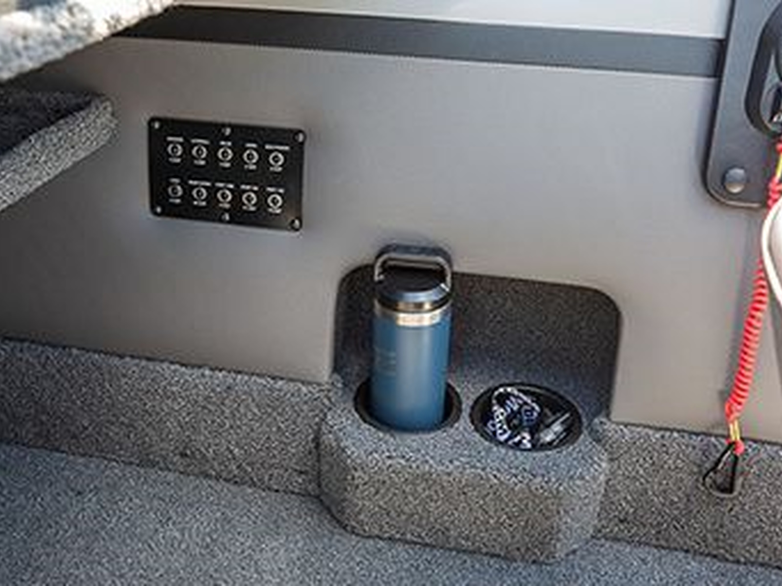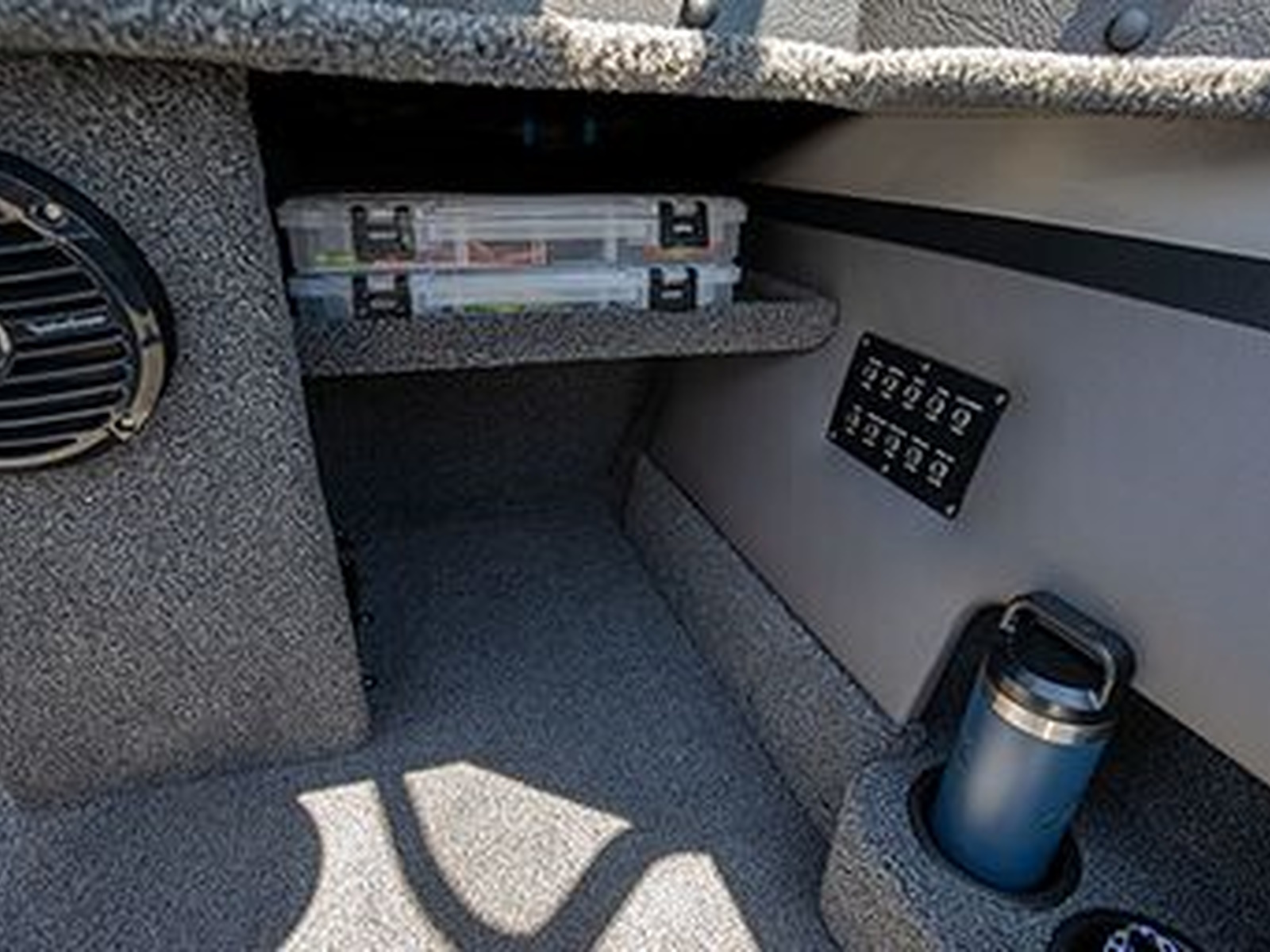- Stern layout features standard jump seats, drink holders, throw tray and tackle tray storage.