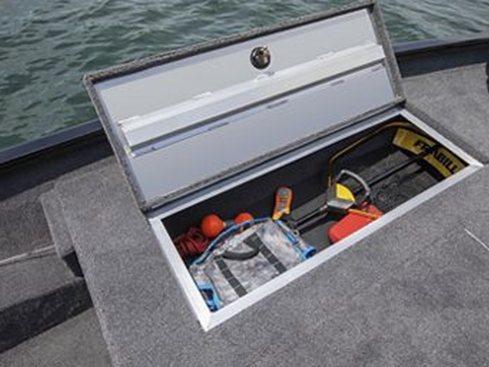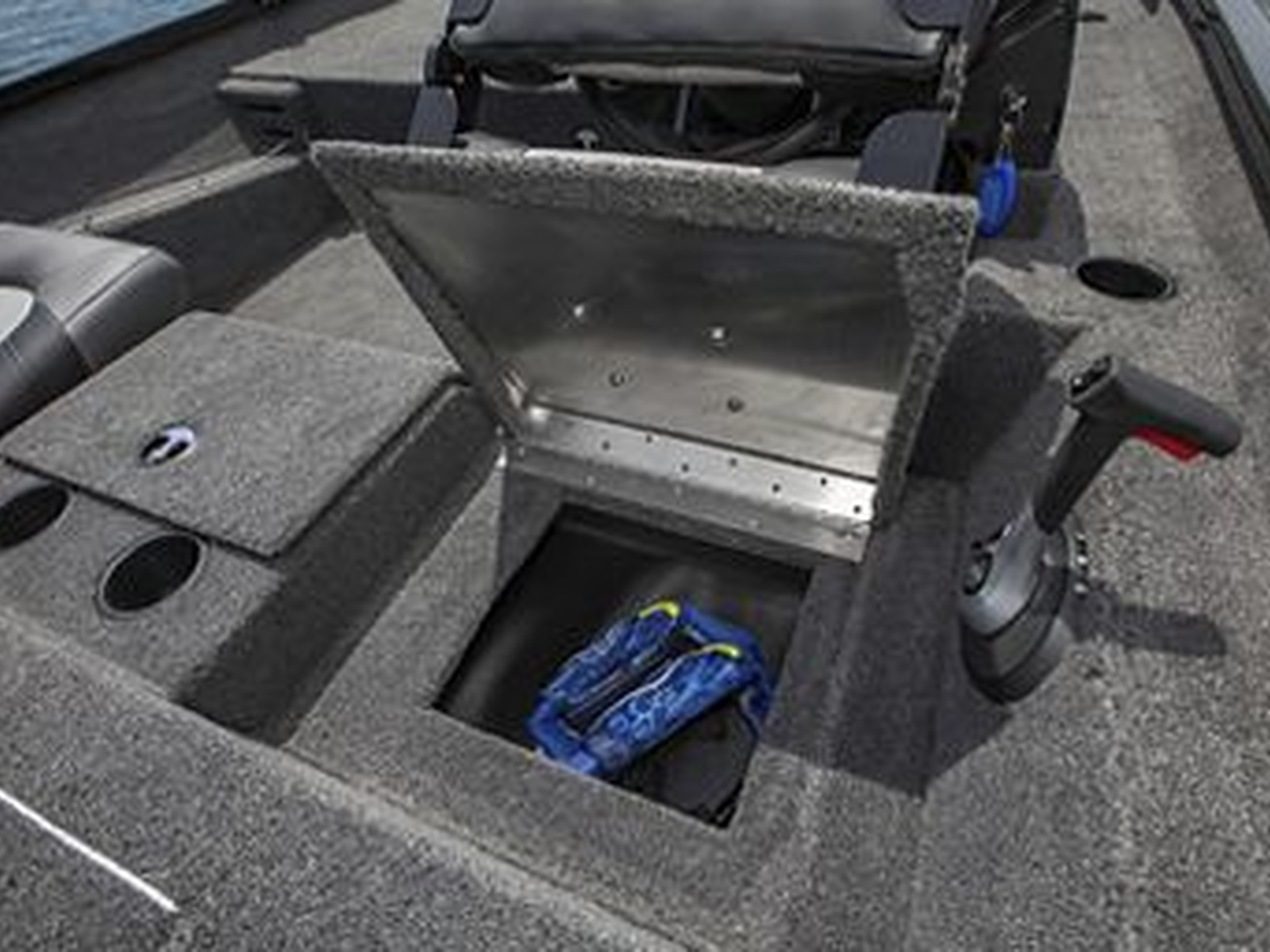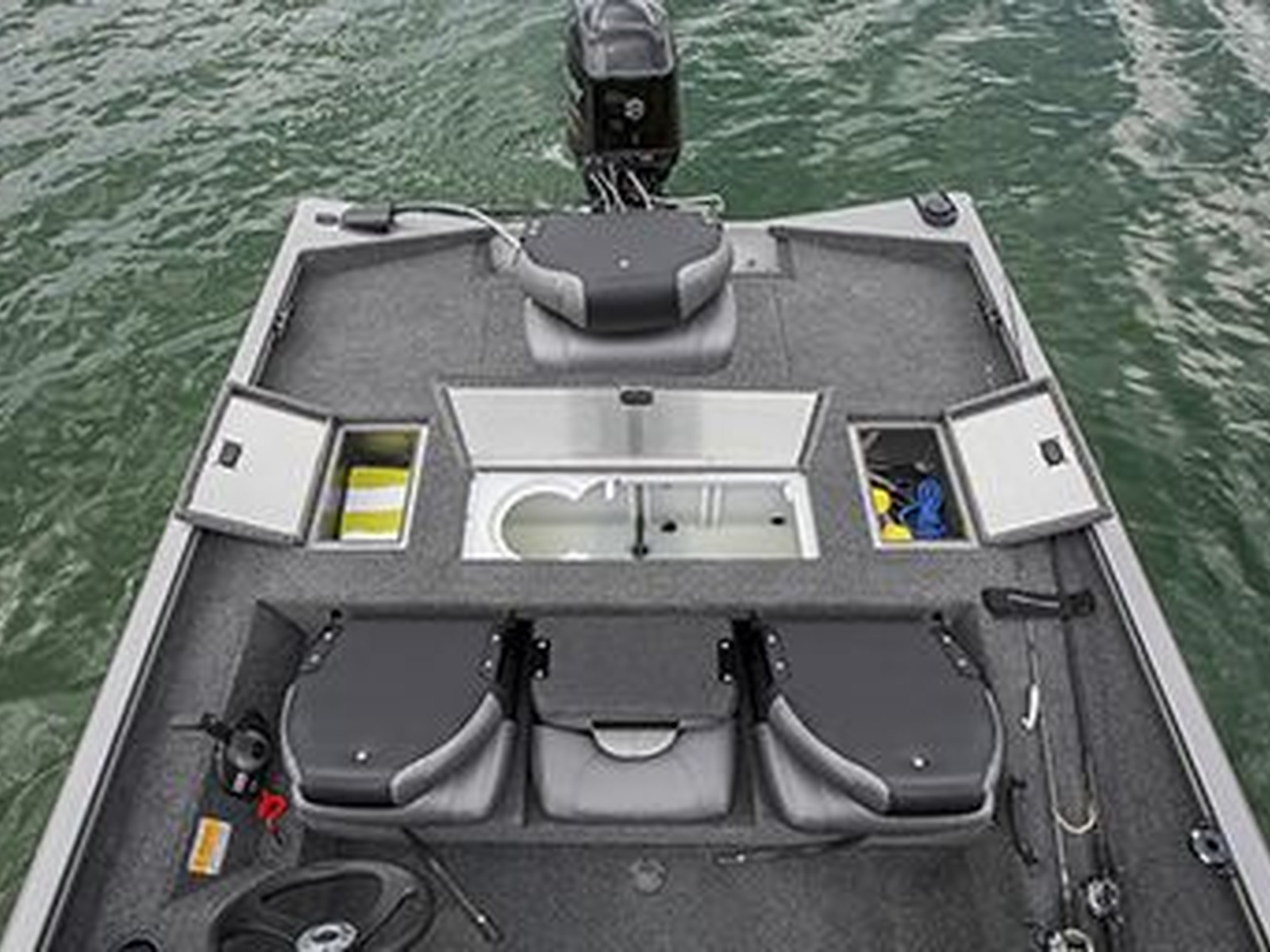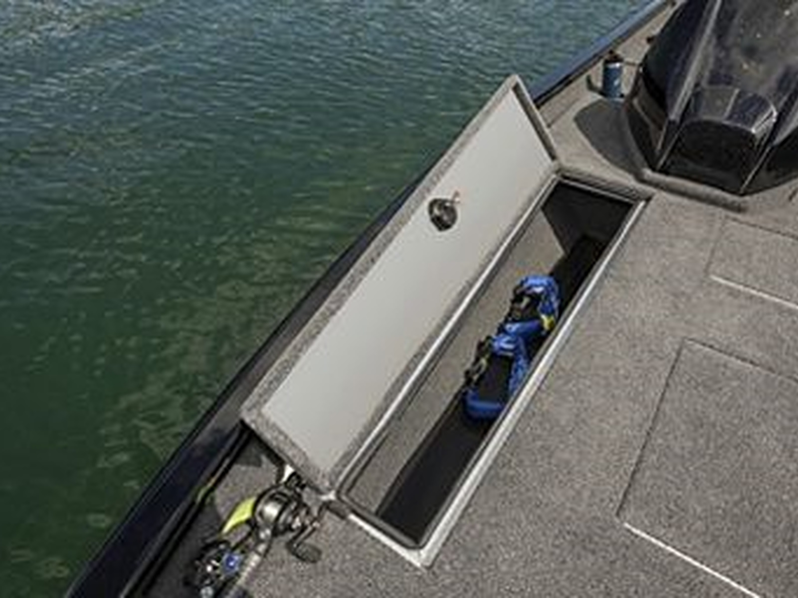 - Stow, store and access more from the bow with a locking storage compartment, 23-gallon center livewell and center storage compartment.