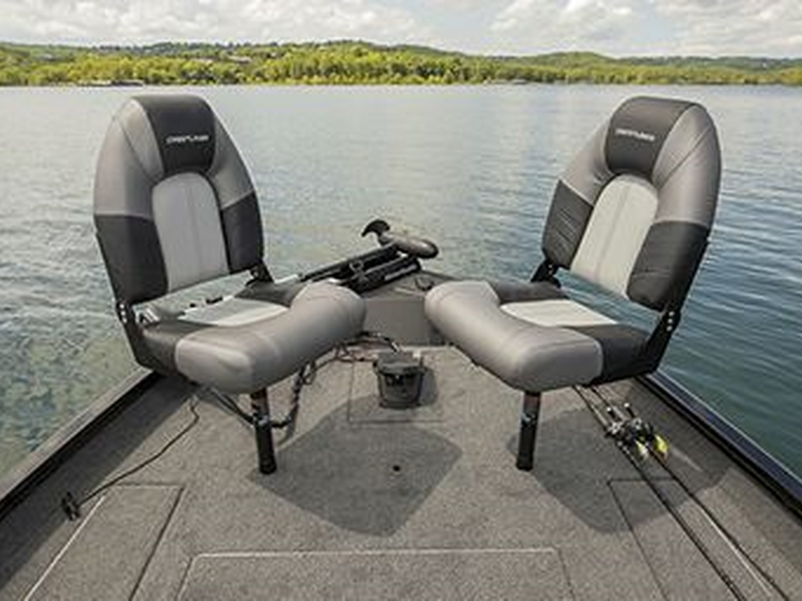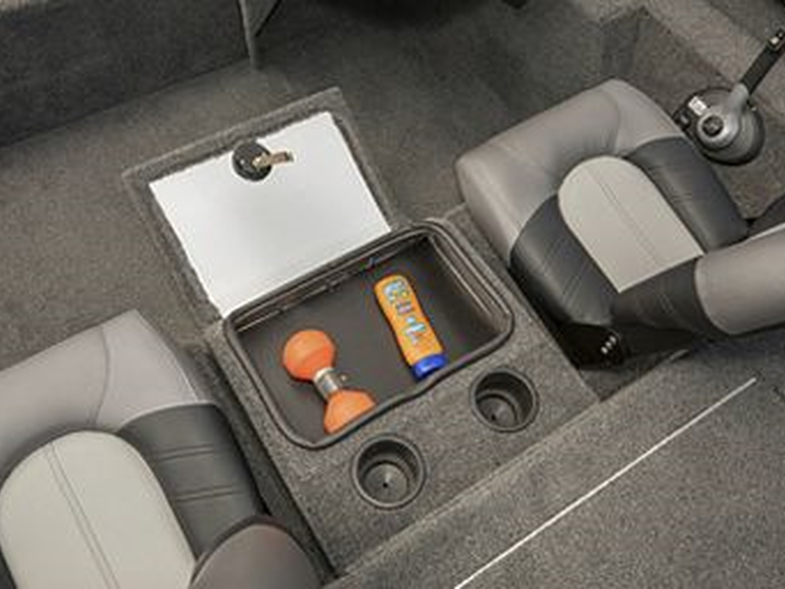 - Helm and passenger Pro folding seats include a center storage/step box and two drink holders. Below each seat is storage to stow gear and keep items secure. Keep pic. Add pic.