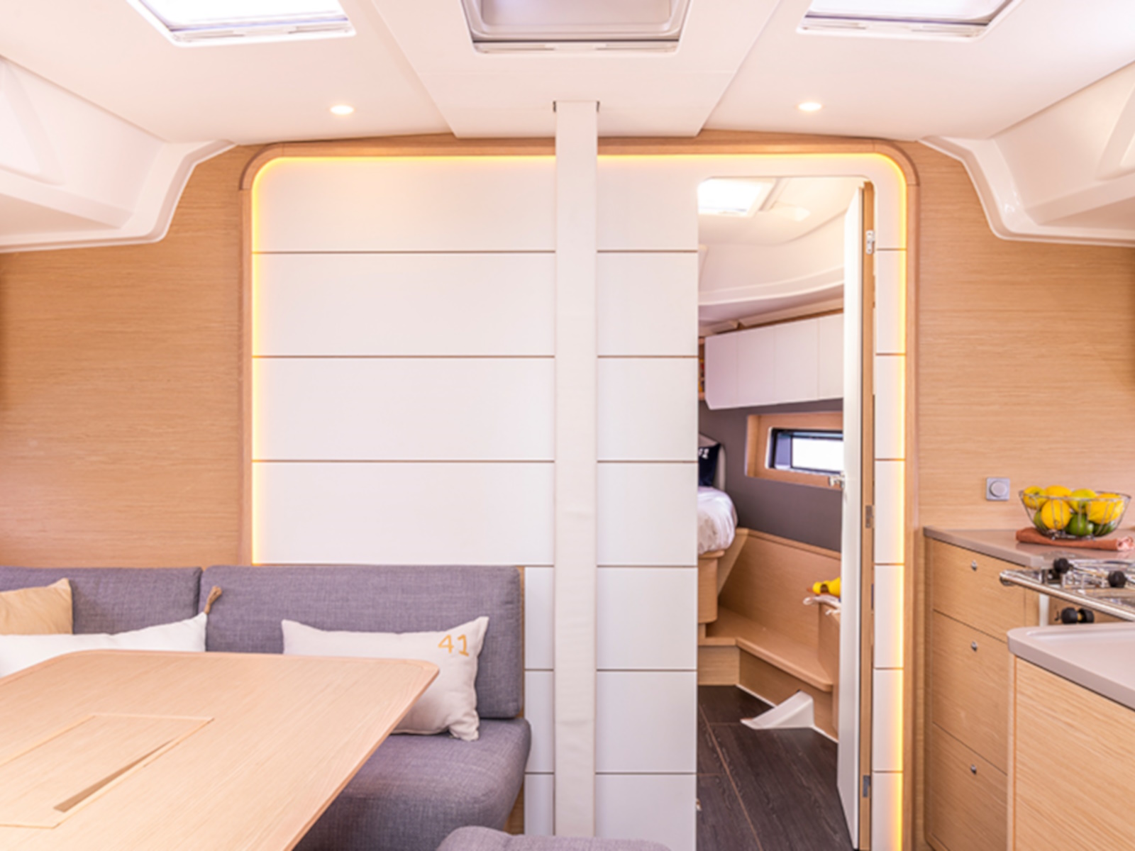 The Dufour 41 has been designed with a new look that focuses on the outdoor life on board. Aboard this cruising yacht that’s over 12 metres in length, the cockpit volume is comparable to that of a much bigger yacht. In creating this boat, the Dufour shipyard has gone a step further, guaranteeing great sailing thanks to the know-how and the experience of its teams who sail with passion.