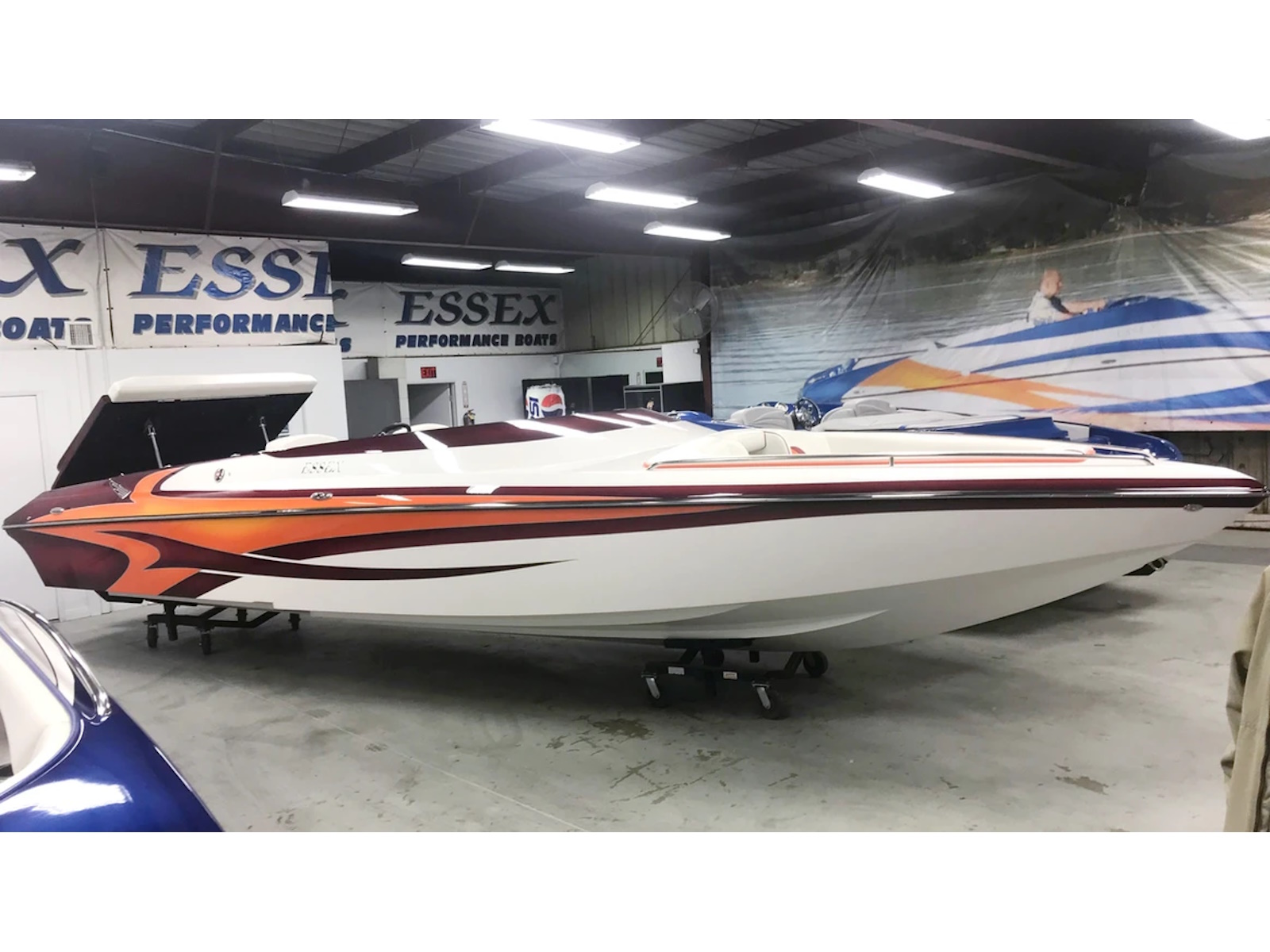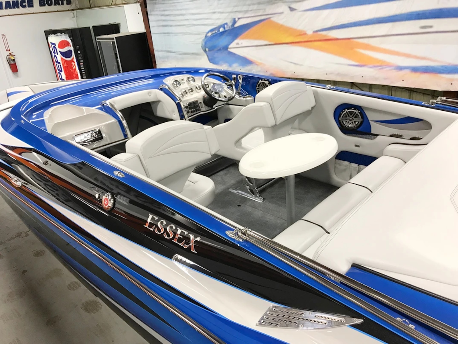 Now we're talking: a full-size 27' bow-rider with a cuddy cabin as your own private quarters. The sleek styling and comfortable ride is a potent combination for large lake or offshore use. The Raven 27 by Essex has rapidly become the most popular of the Essex line. Where else can you receive the comfort of a 27' boat and the maneuverability and the functionality of a sport boat? The Raven 27's hull design incorporates a roomy cockpit with a large bow seating area and a large cuddy cabin area with plenty of head room. See for yourself why so many fall in love with this feature-packed, brilliantly designed craft.