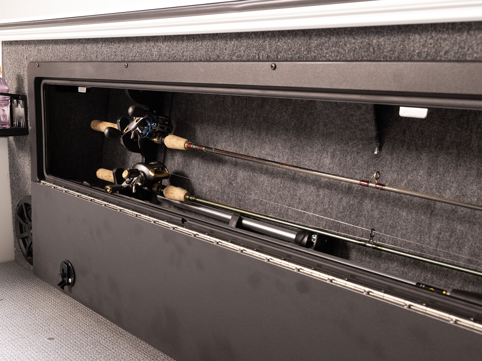 Rod storage has been added to the port side wall. Gives you space for those extra rods that you just can’t leave a home.