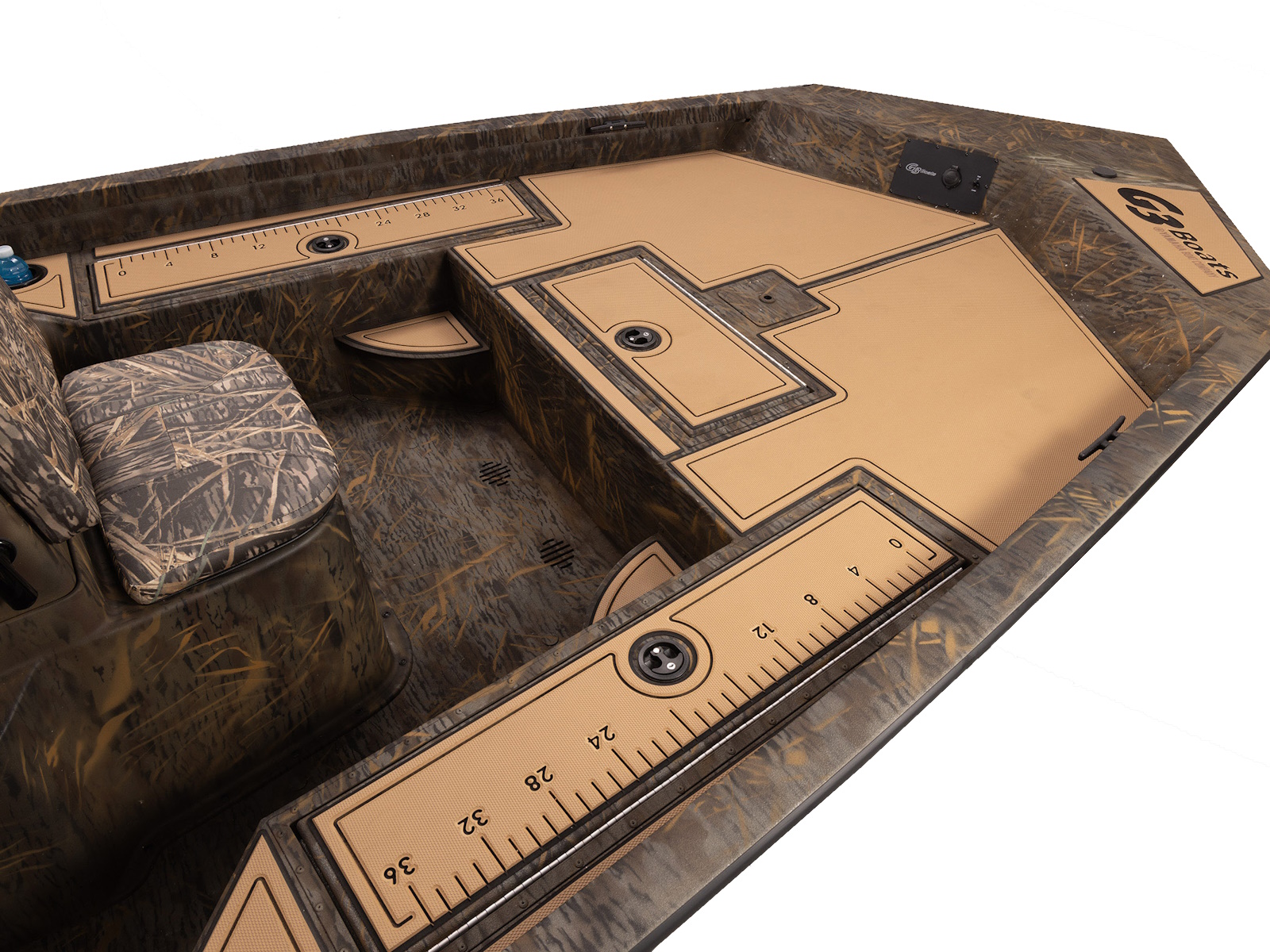 Stern layout provides jump seats on both sides of the stern livewell for those additional passengers along with small item storage. Shown with optional SeaDek®.