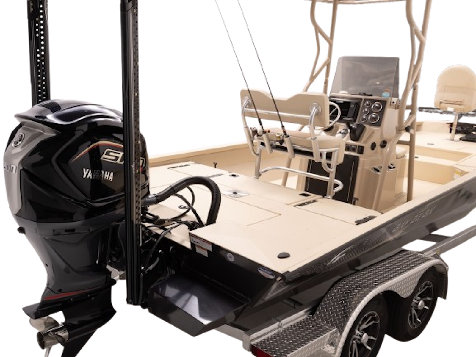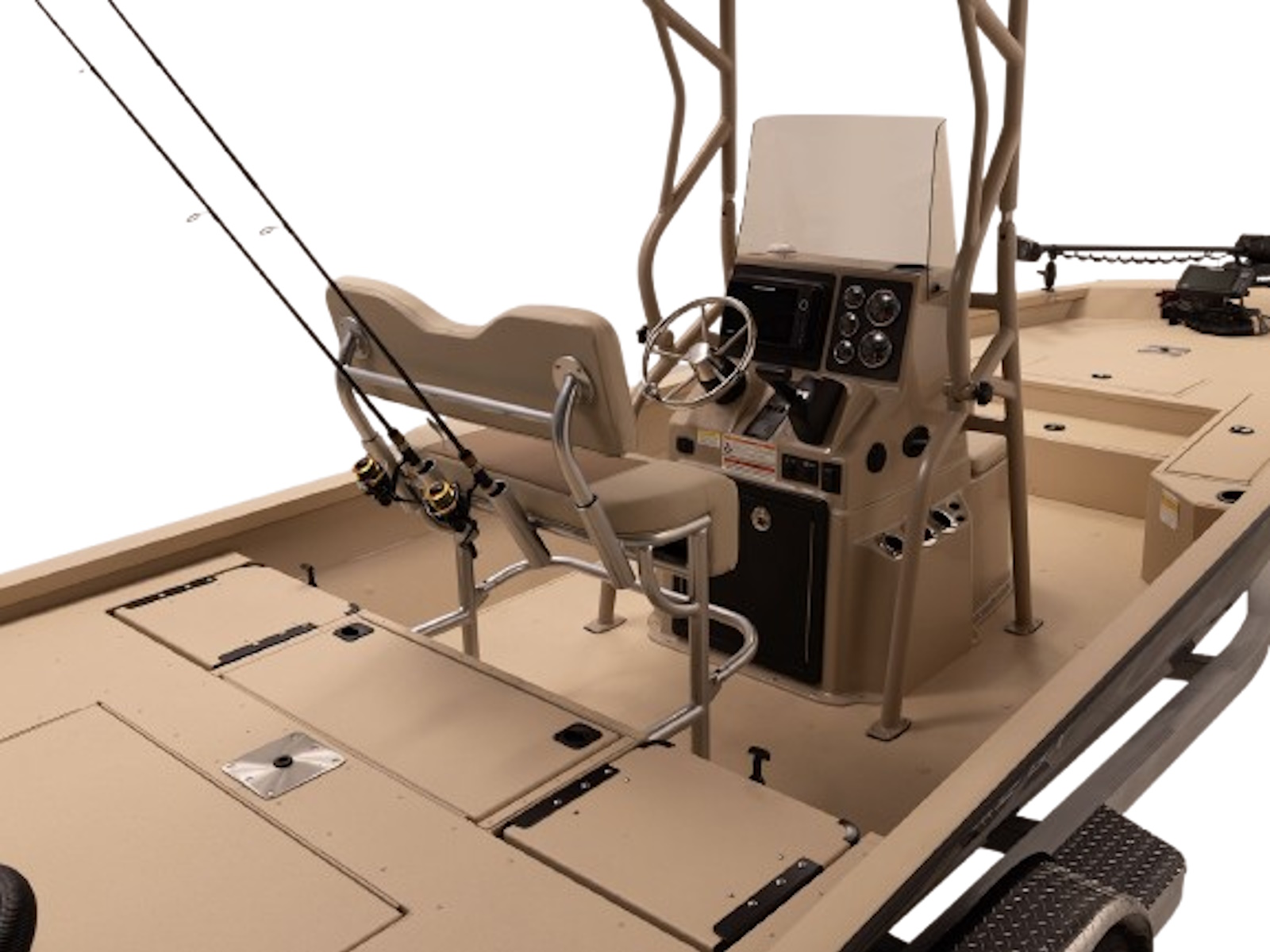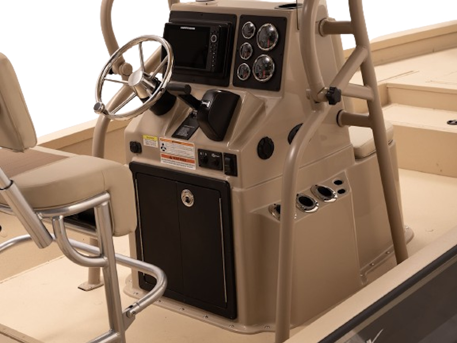 Console allows for larger optional electronics. Lockable, secure console storage furnishes protection for your valuable gear. Shown with optional Power Poles® and a T-Top.