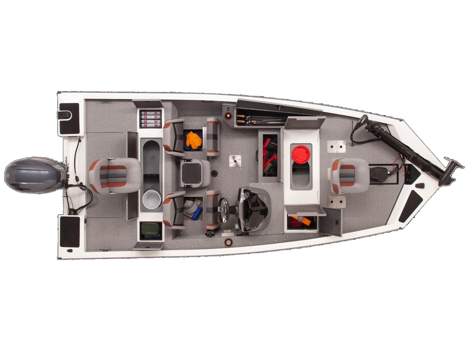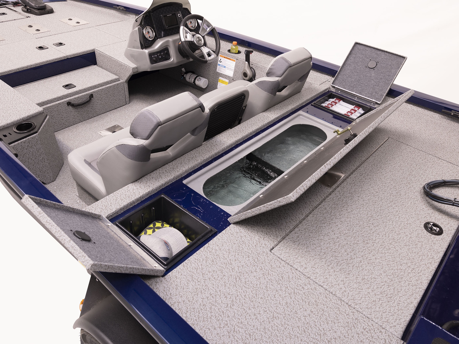 33 gallon stern livewell makes this boat a great choice for crappie or panfish fisherman. Small item storage and tackle box storage is found on either side.