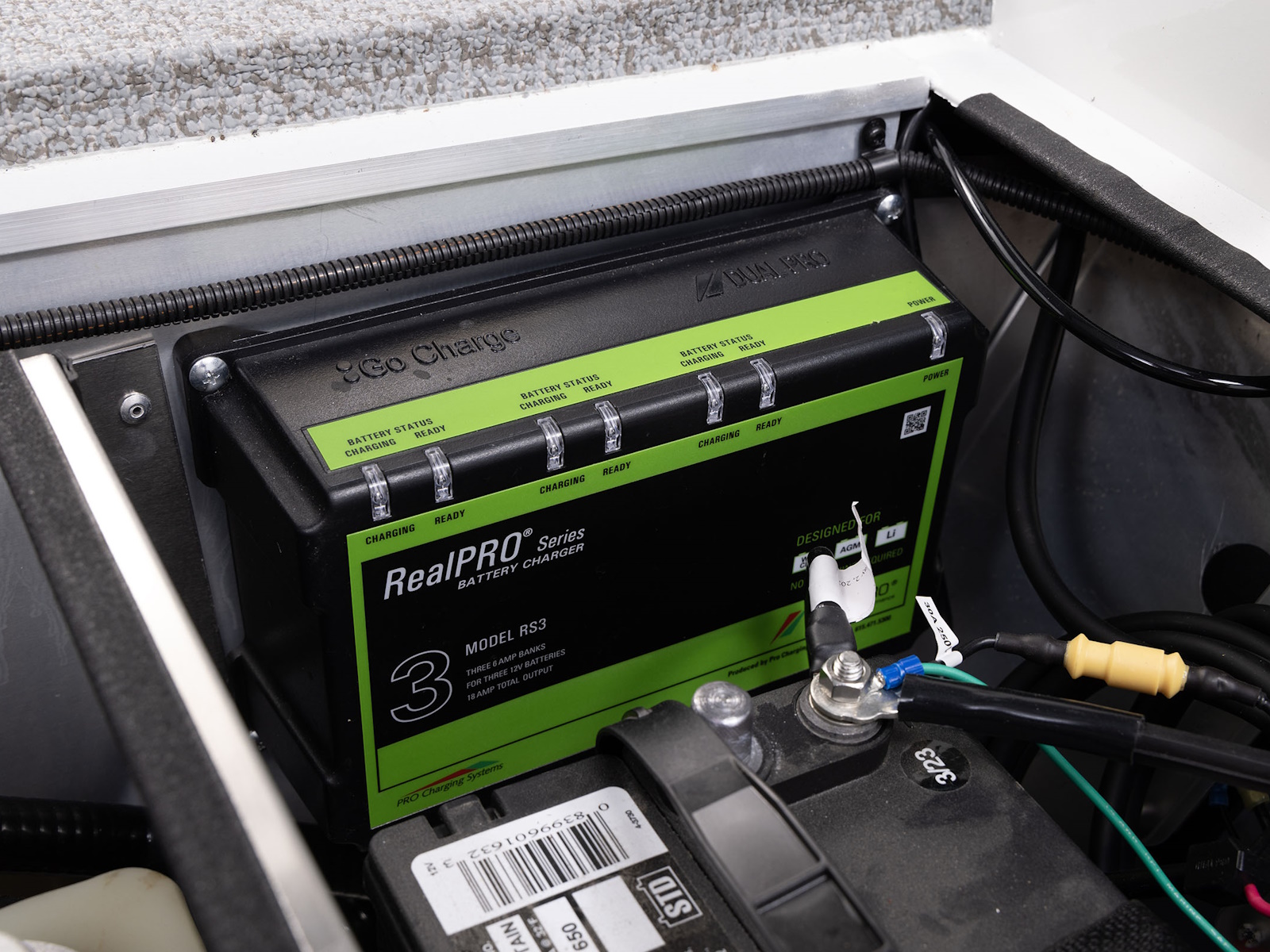 Shown with optional 3 bank battery charger. Comes standard with a 2 bank.