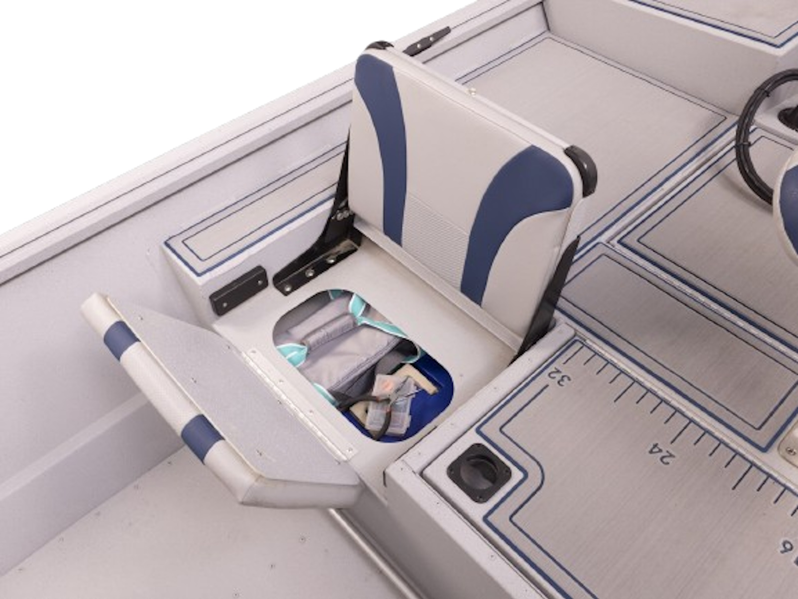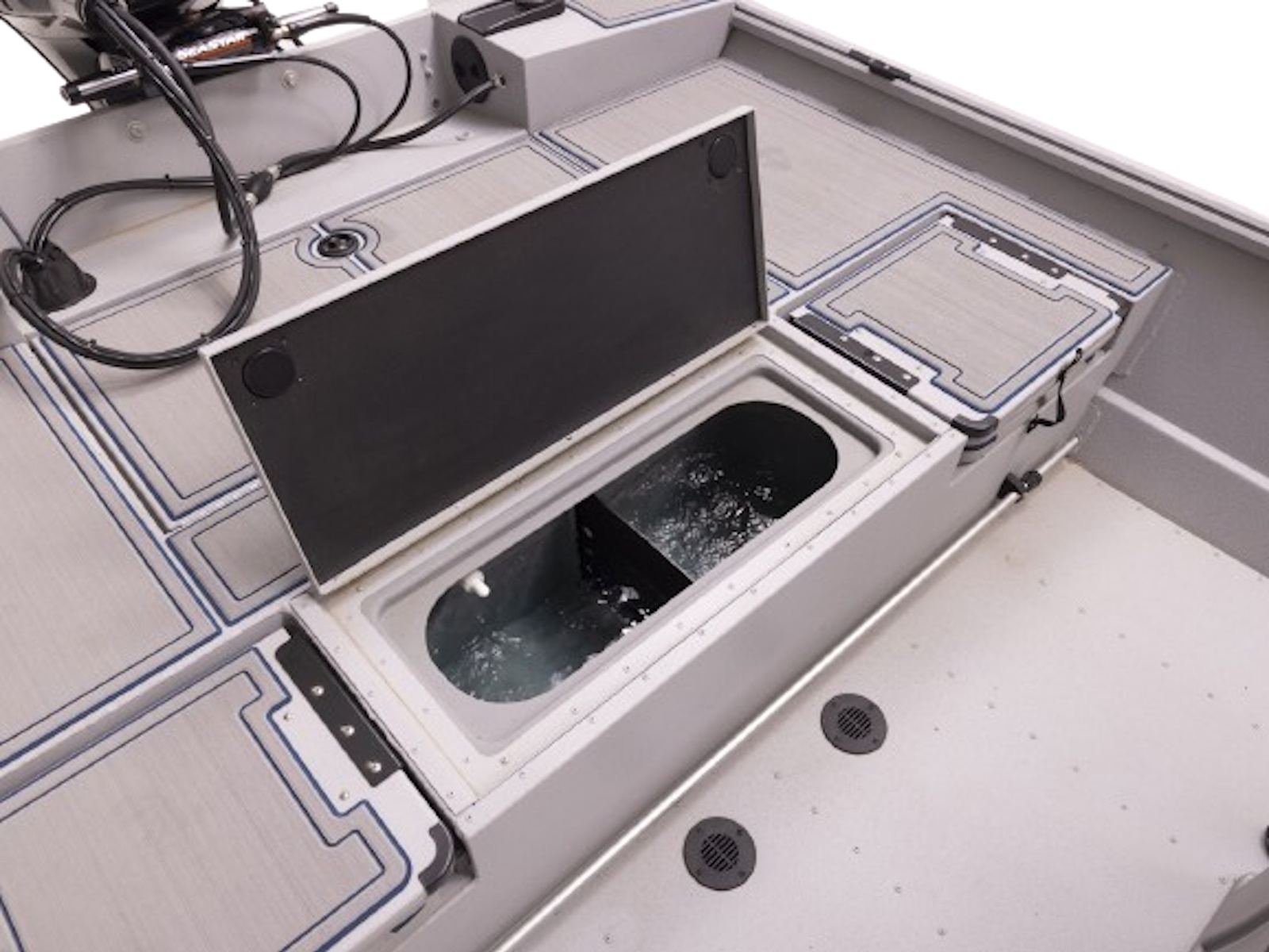 31 gallon stern livewell is flanked by two jump seats for additional seating with storage underneath.