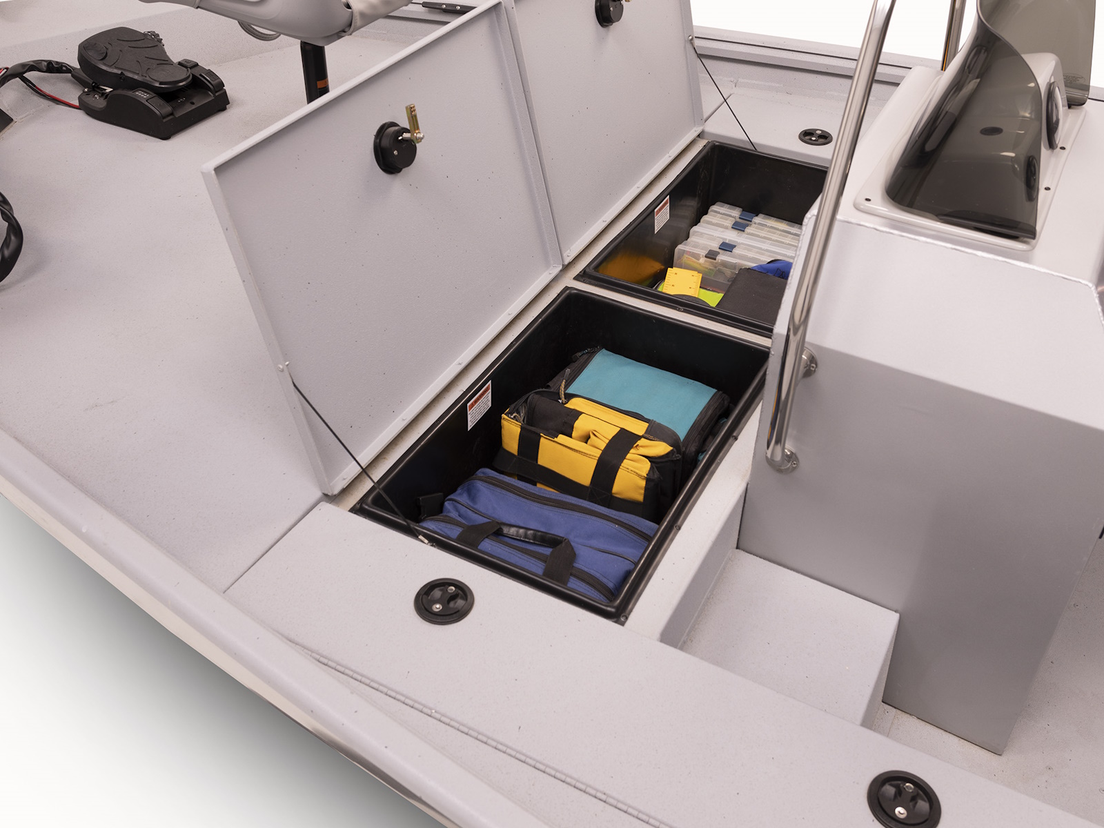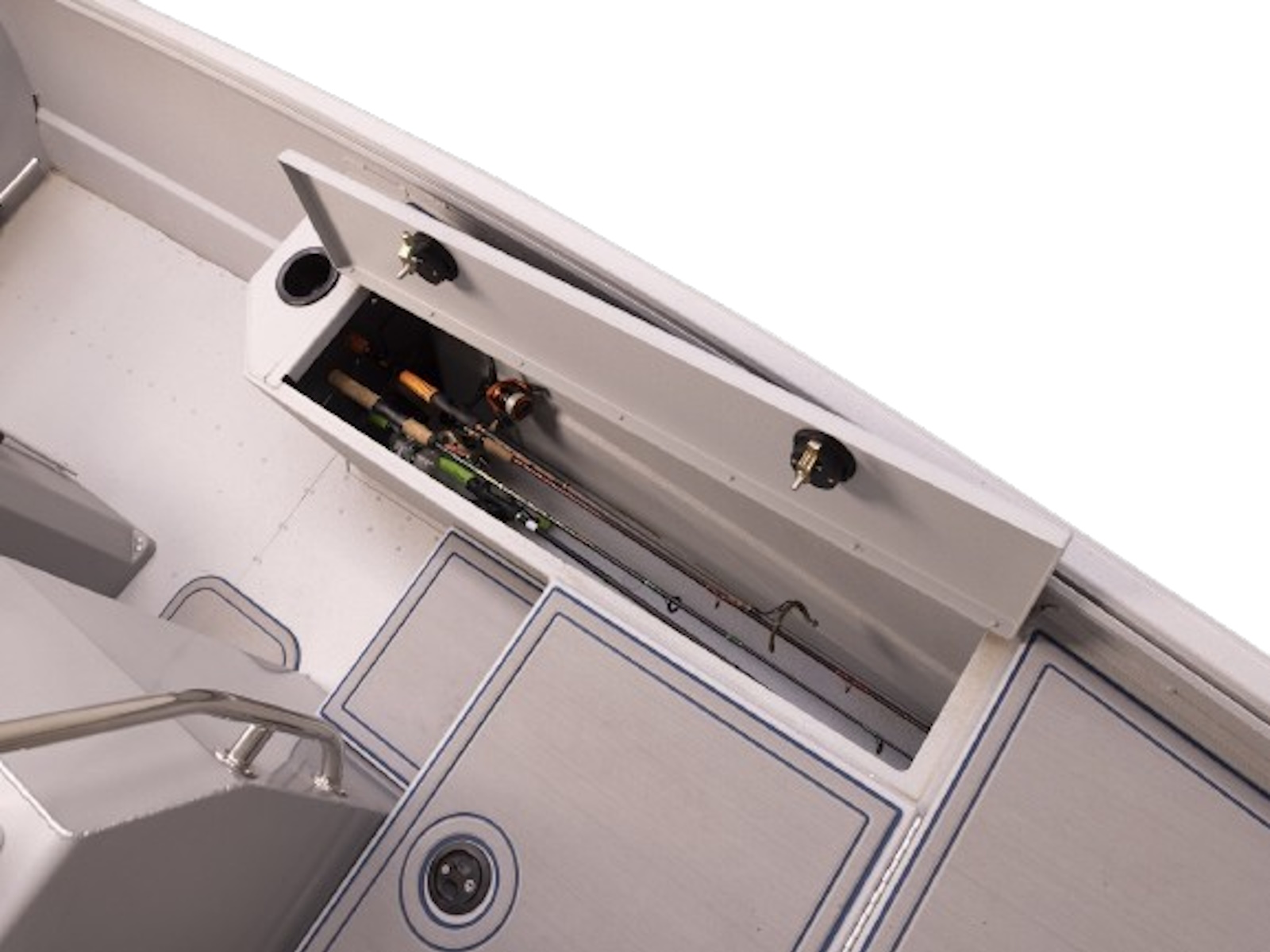 Rod box along port side of cockpit is lockable to secure your valuable equipment.