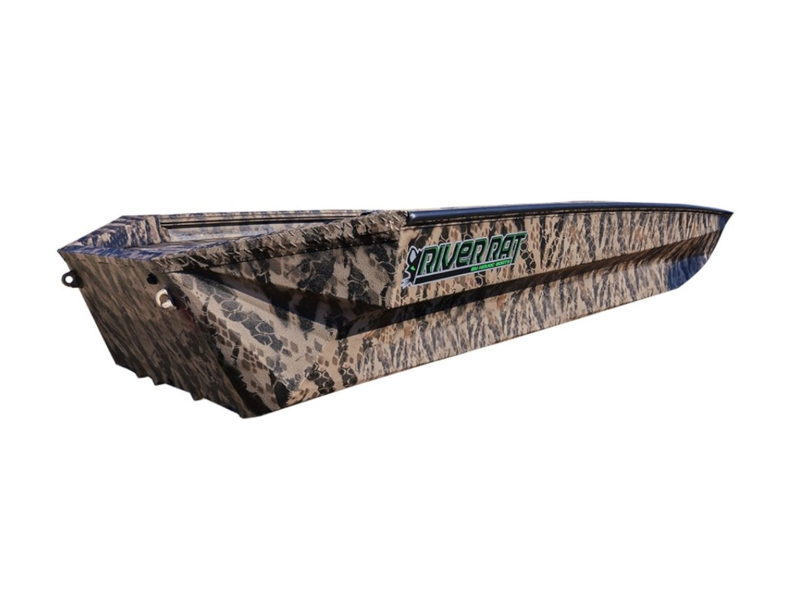 Our V-RAT models are made to perform with lighter duty set-ups and jet motors in the 40-60 HP range. The V-RAT has a semi-V front, a flat bottom, and a 22″ standard transom. This boat is built tough for navigating shallow sandy rivers, yet has a few design features to maintain light hull weight, such as lateral C-channel bracing and a perforated floor. Whether you’re targeting fish holding in the shallows or settling in for an afternoon on the sandbar with friends, the V-RAT is ready when you are.
