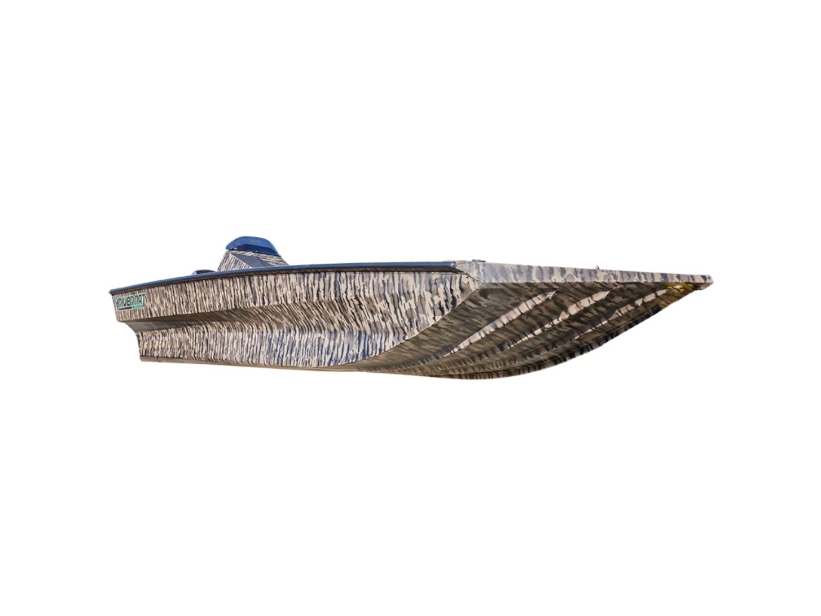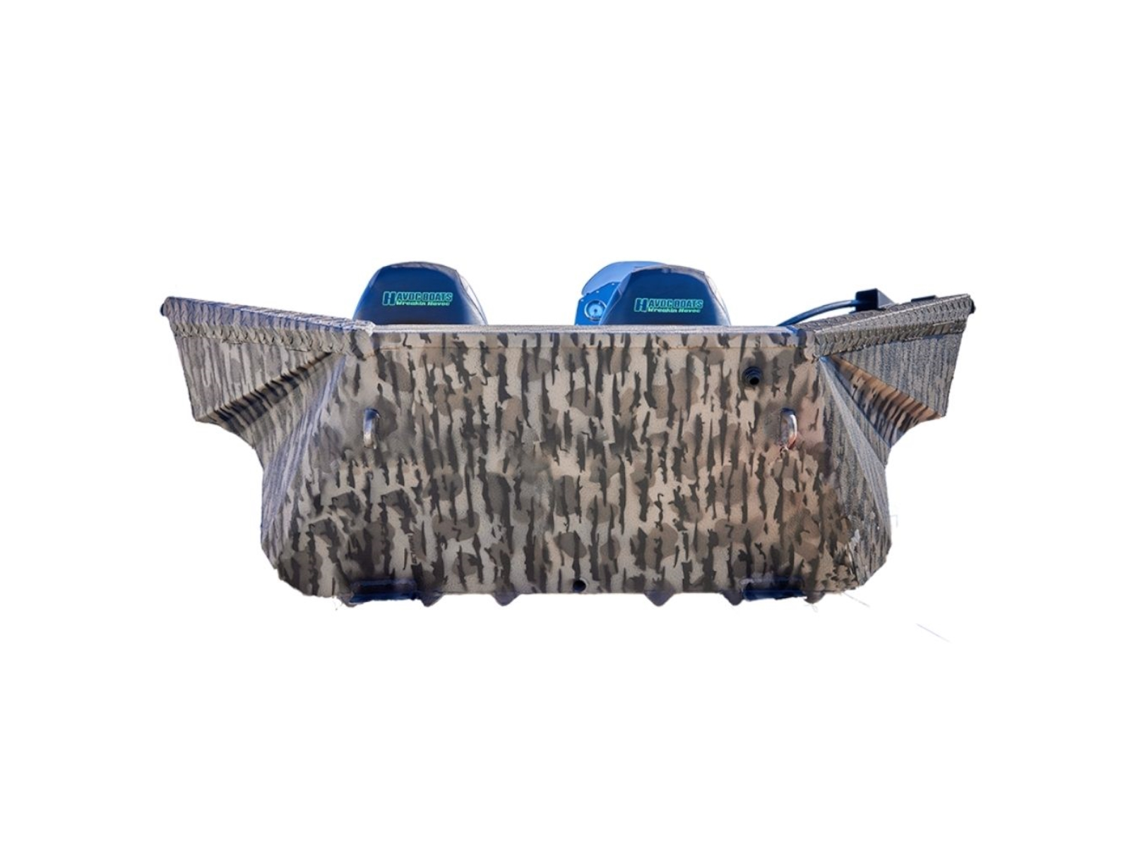 If you need a shallow water set-up but prefer side console steering, the VRATSC answers the call. This hull is a lighter duty model that is ideal for jet motors in the 40-60 HP range. It has a semi-V front, a flat bottom, and a 22″ standard transom. The aluminum side console is rugged, yet lightweight, and features essential tools like an RPM gauge, switch panel for electronics, and a tinted windshield. We designed the VRATSC with lateral C-channel bracing and a perforated floor to trim hull weight and still build a durable, full-featured boat that meets Havoc manufacturing standards.