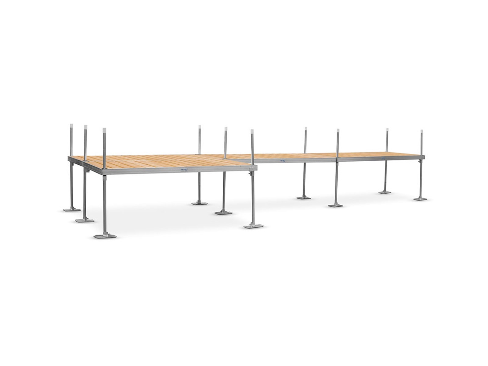 Hewitt Vers-A-Dock is a sectional lightweight dock that offers many advantages over traditional post and plank docks. Modular components simplify setup, changes and removal. With smaller, lightweight frames and 4’x4’ drop-in deck sections, one person can easily assemble an entire dock. A 4’x8’ frame section weighs just 38 lbs (54 lbs with two poles attached), and deck sections are only 36 lbs each. Vers-A-Dock also features inside post mounts for a smooth side wall with no protruding parts that could damage boats. Get this lightweight dock for easy assmbly with little to no maintenance.