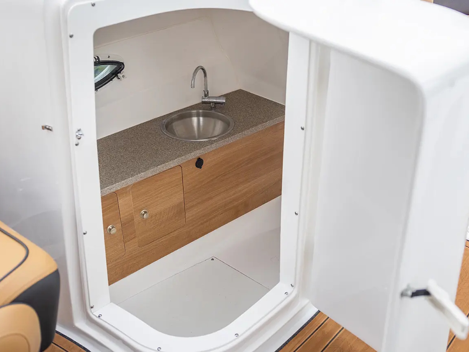 - Enclosed Sink & Shower w/ Teak Deck Flooring
