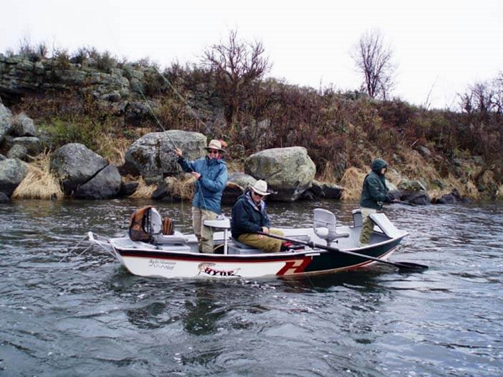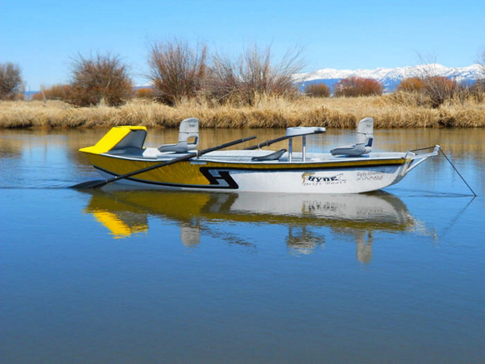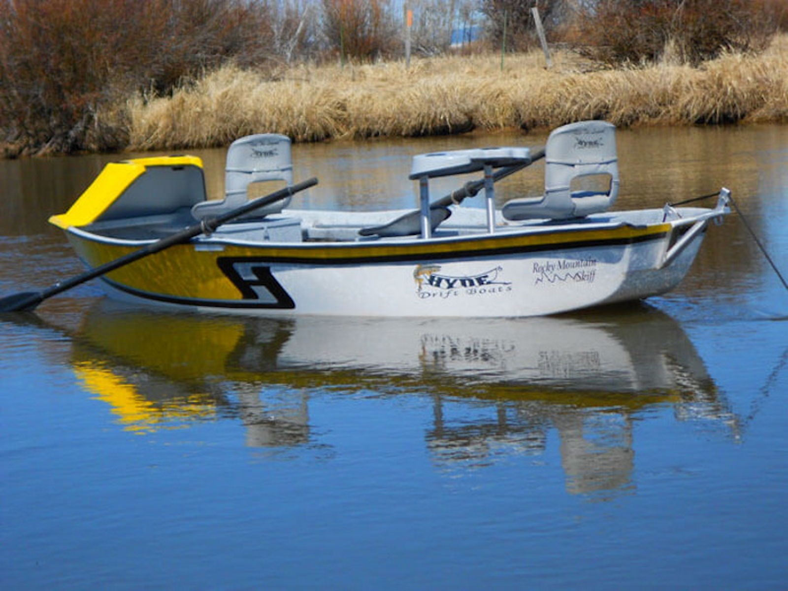 Newly designed, the Hyde Rocky Mountain Skiff is designed specifically for windy conditions and those hard-to-reach places. The boat comfortably accommodates three people while displacing a minimal amount of water.The low-profile design allows you to approach selective fish without spooking them. This is the ideal boat for windy conditions and isolated areas. Front & rear casting braces are available. All Hyde Drift Boats feature a lifetime warranty.