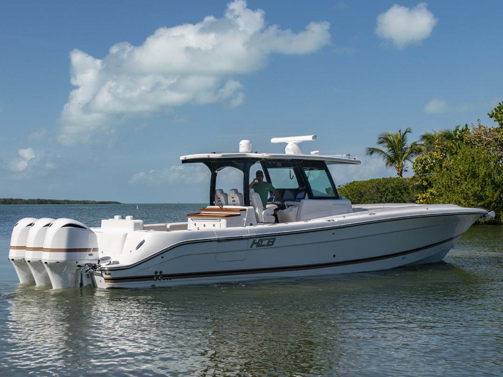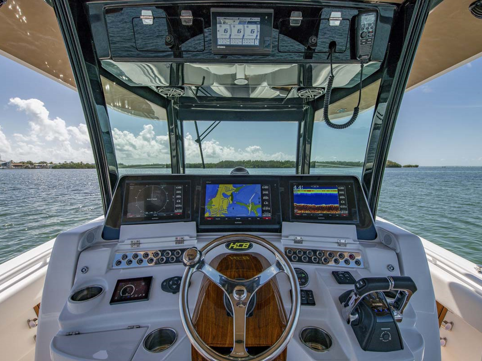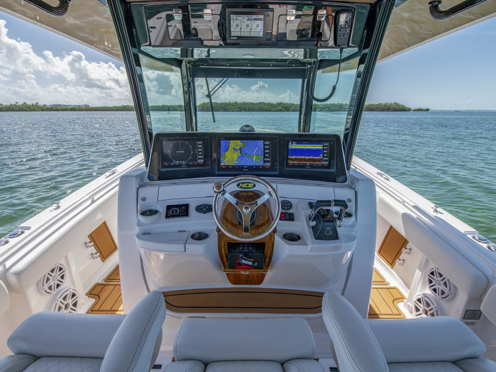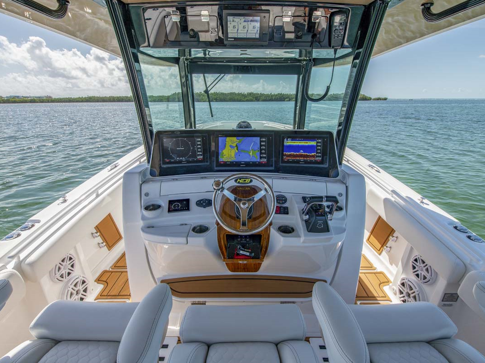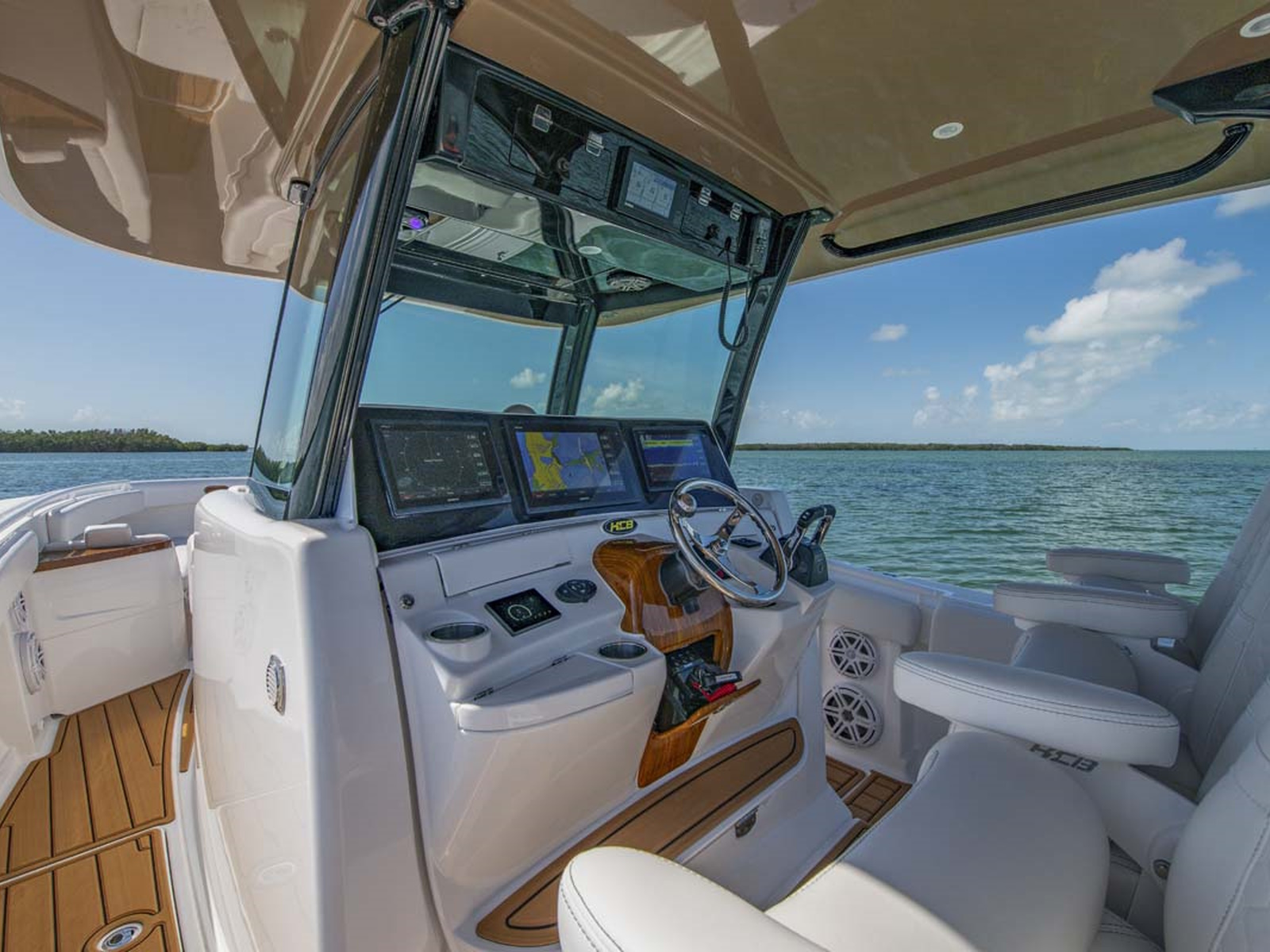 This family-friendly center console yacht is a comparison shoppers dream, with the all of the desired standard features and comfort you expect from HCB.